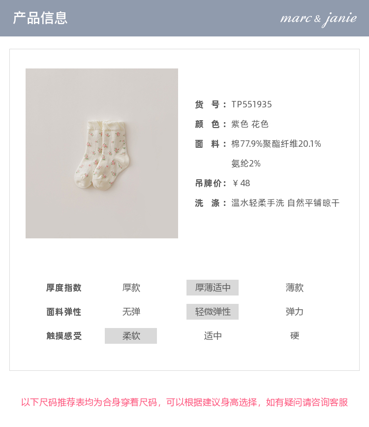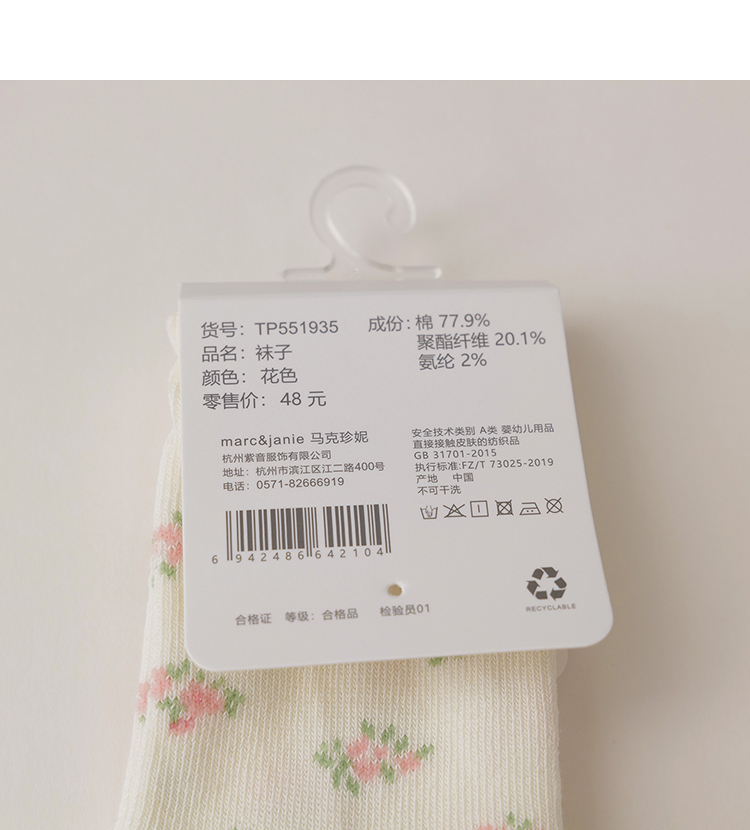 马克珍妮女童柔软弹力花边中筒袜2025年秋冬新款551935