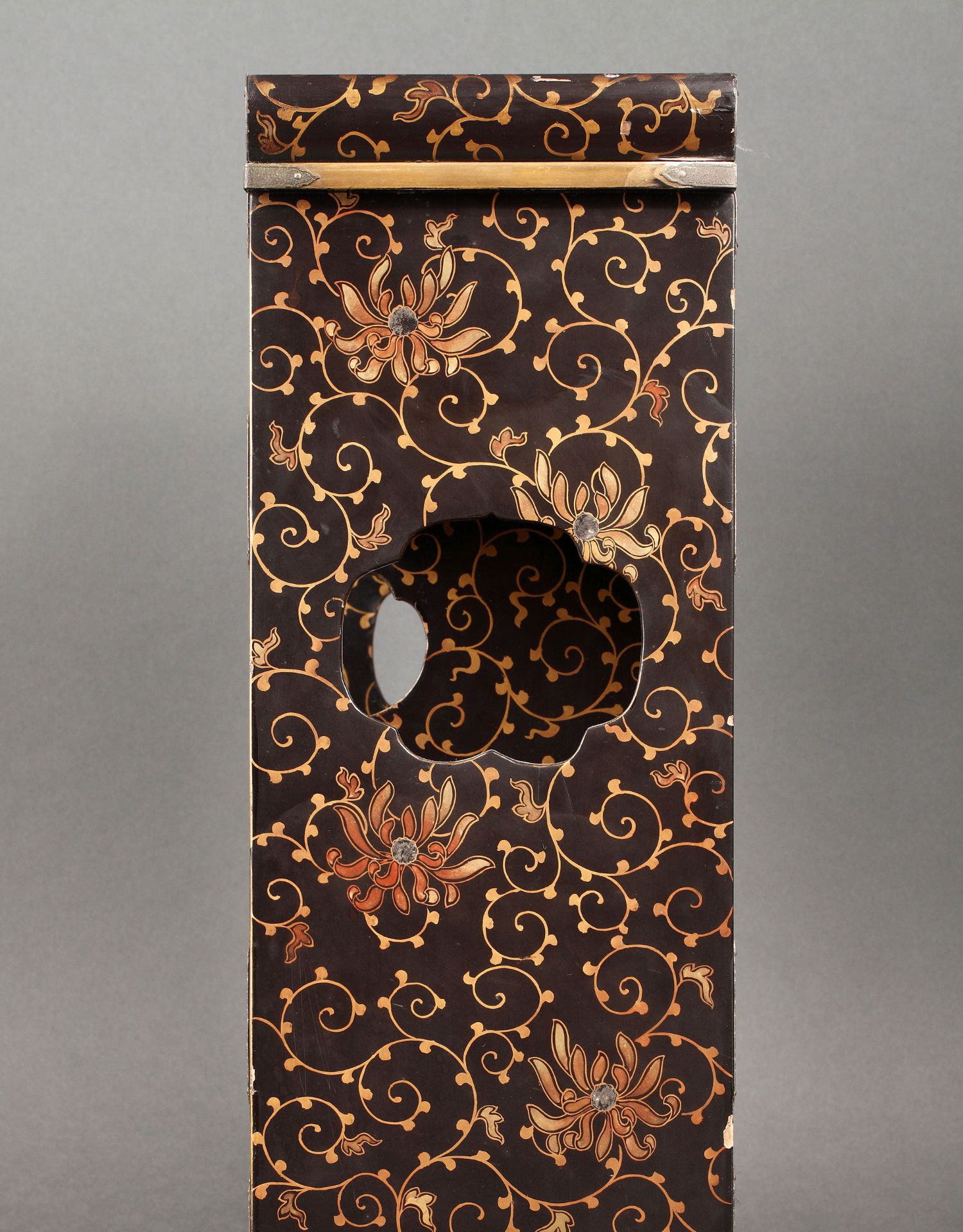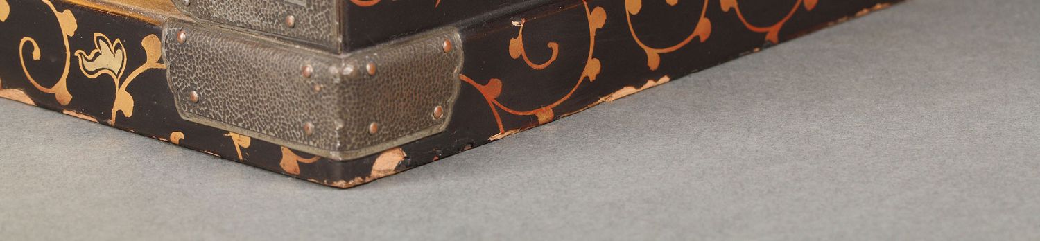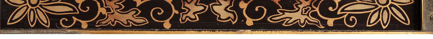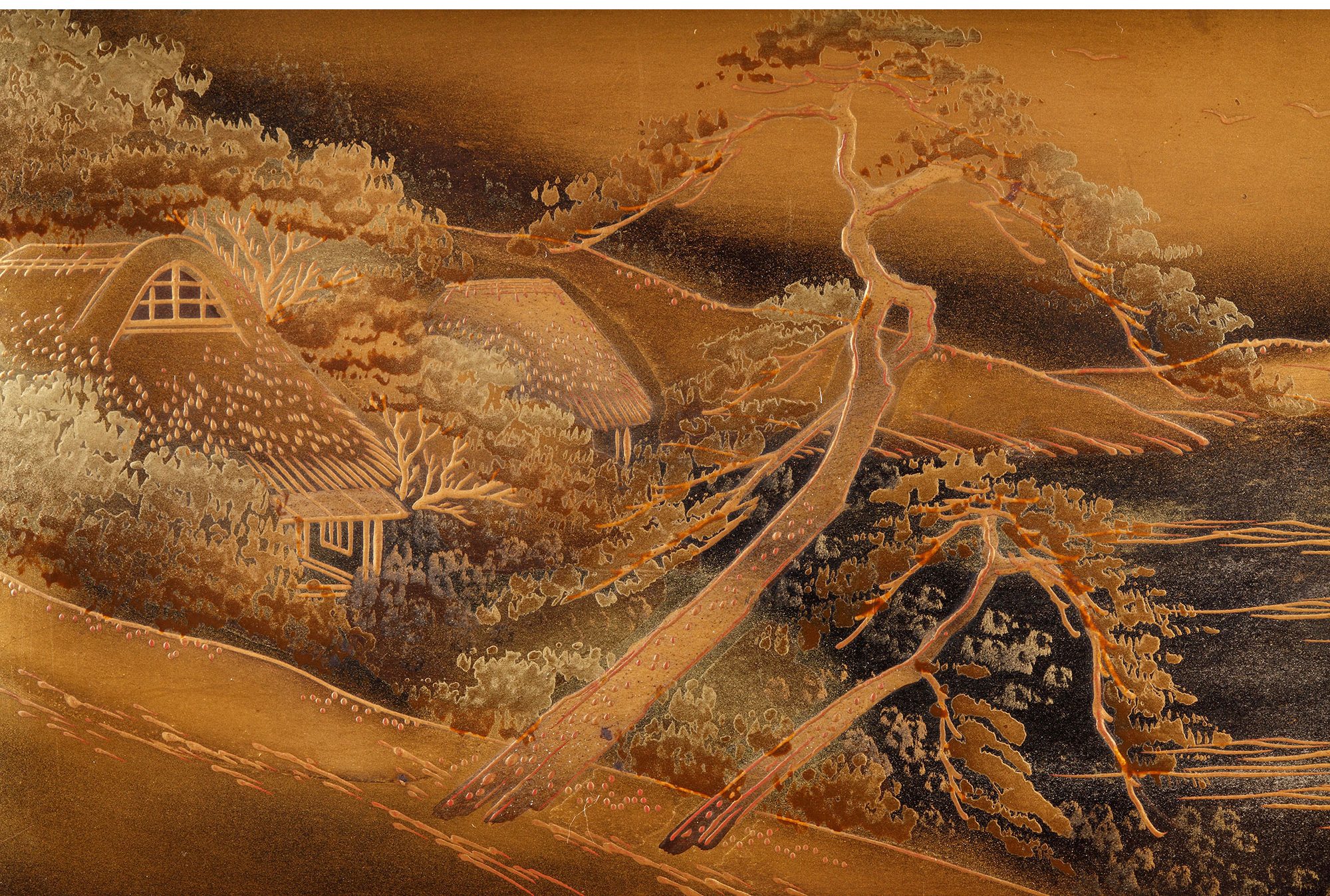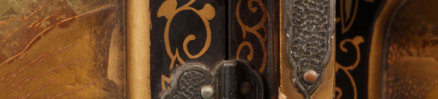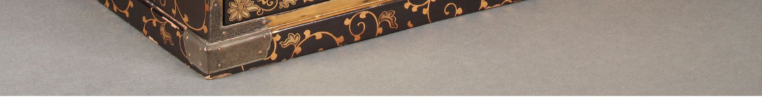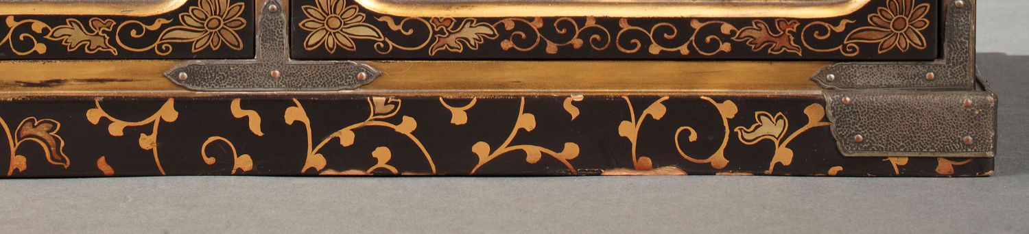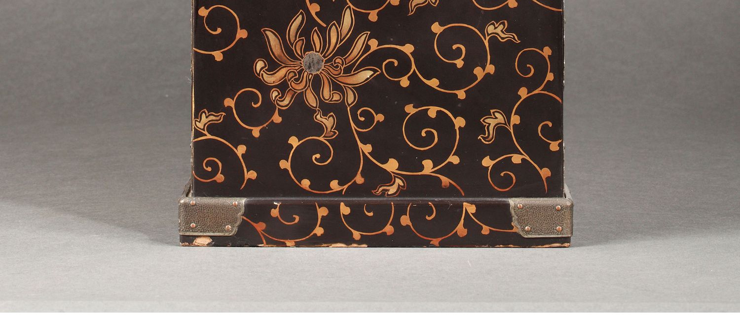 独角鹿西洋古董19世纪日本山水主题黑地金漆莳绘小型珍宝柜置物柜