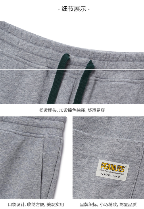 佐丹奴男装【史努比联名款】商场同款夏季棉质短裤01105352
