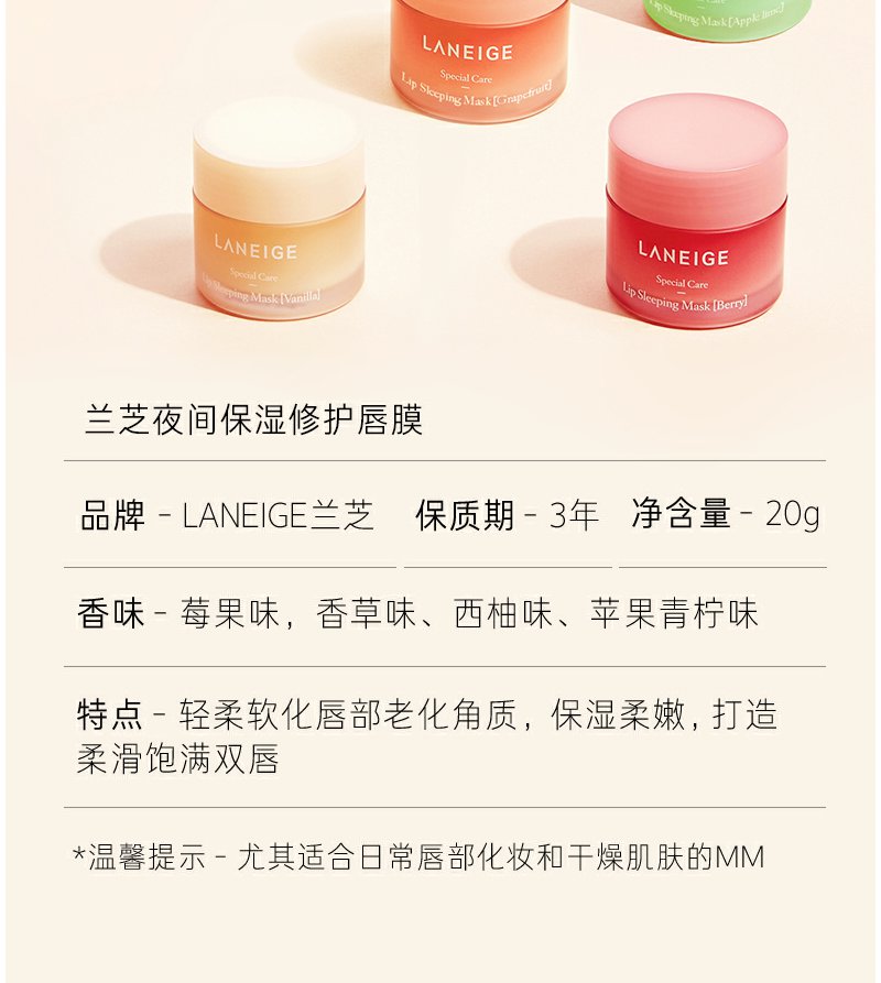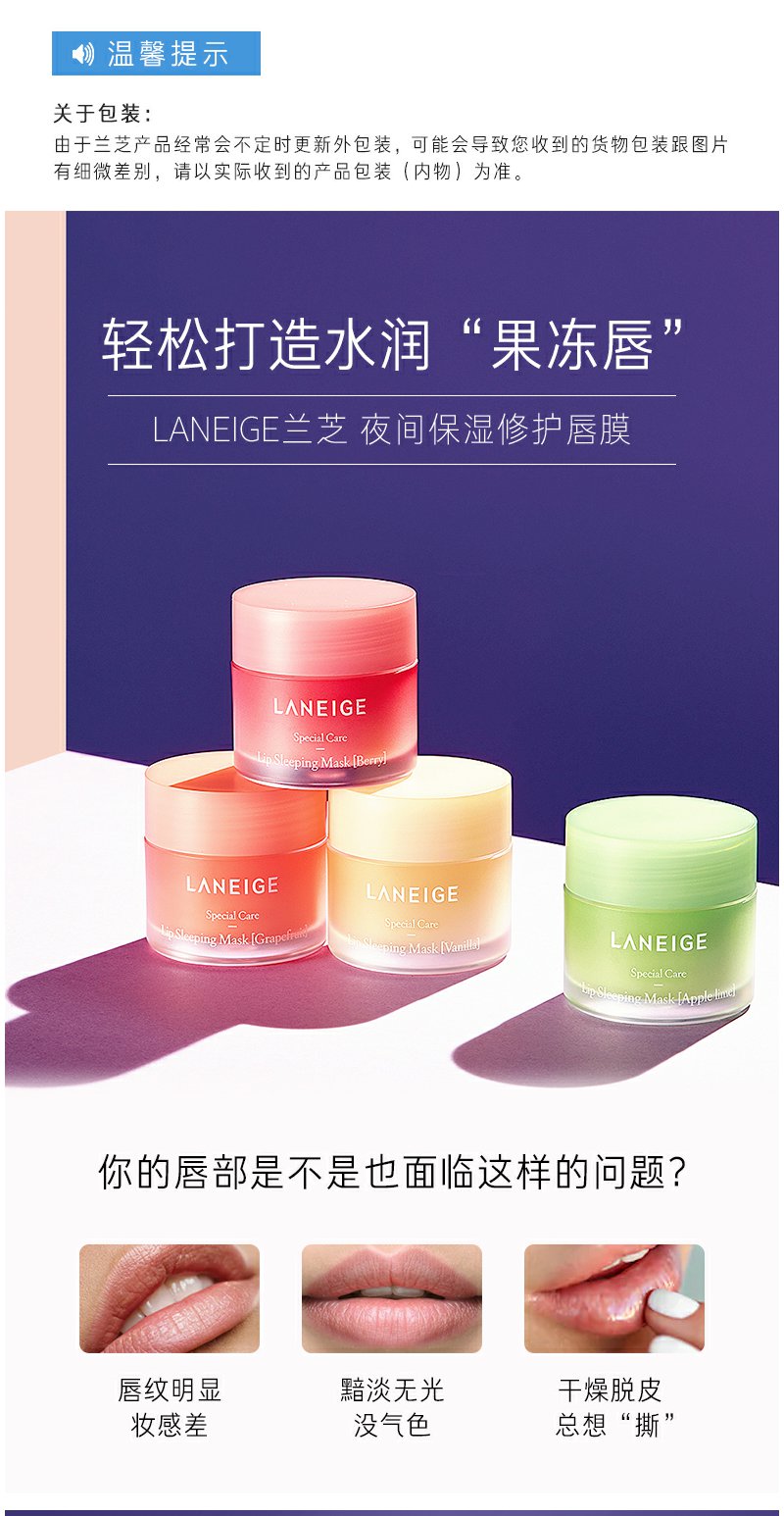 兰芝夜间修护唇膜20g