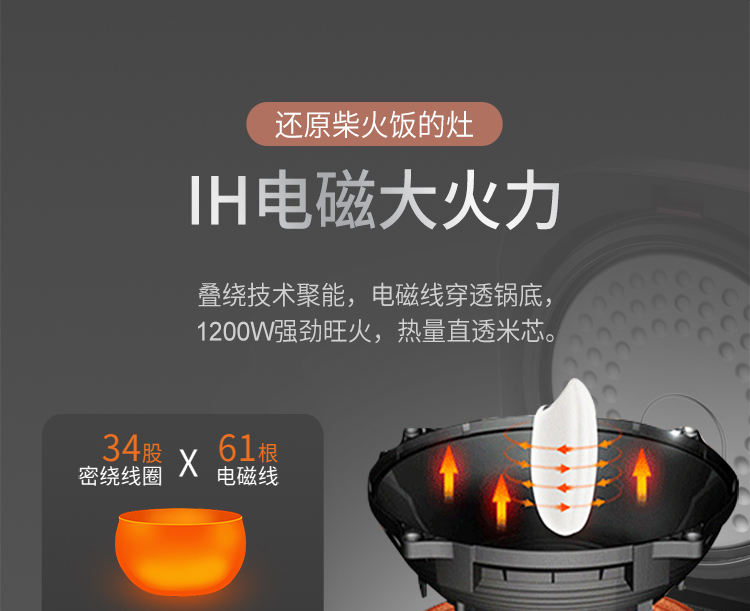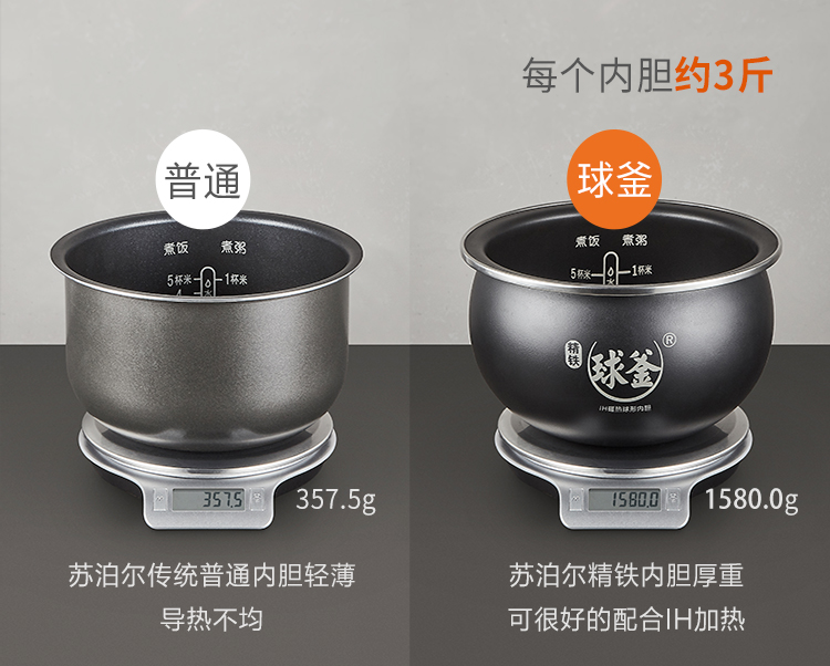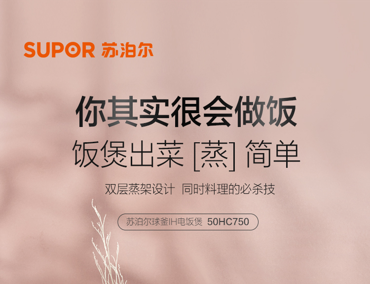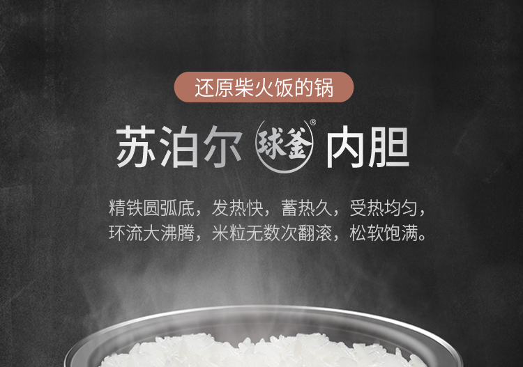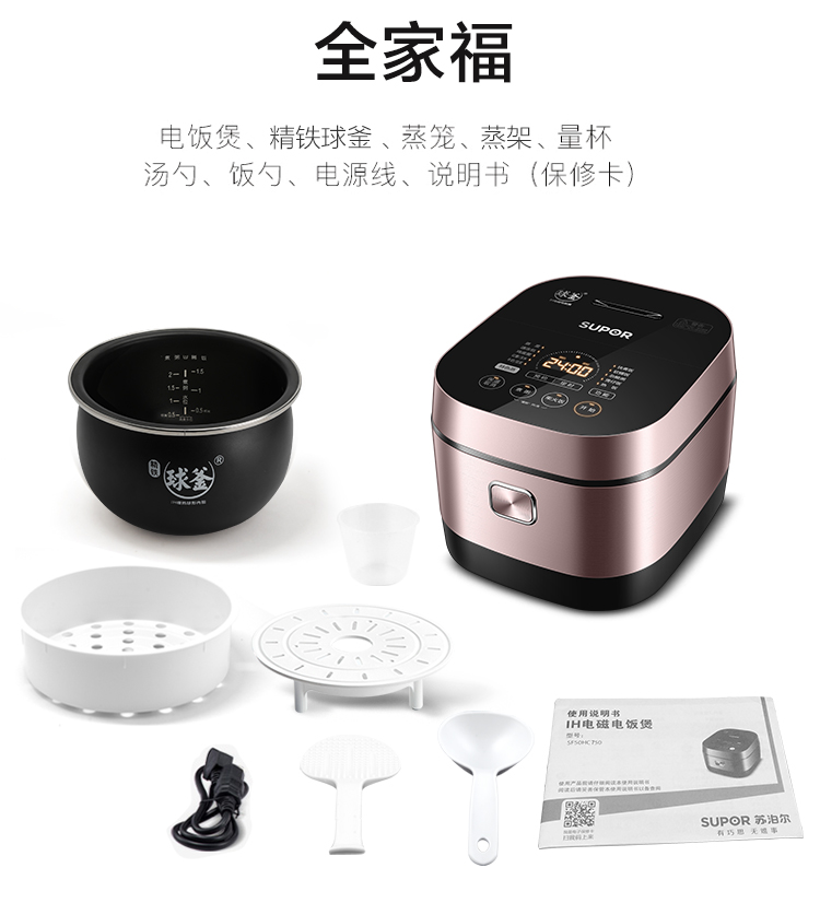 苏泊尔(SUPOR)电饭煲电饭锅IH电磁加热智能预约5L电饭煲触摸操控精铁球釜内胆家用智能电饭煲SF50HC750