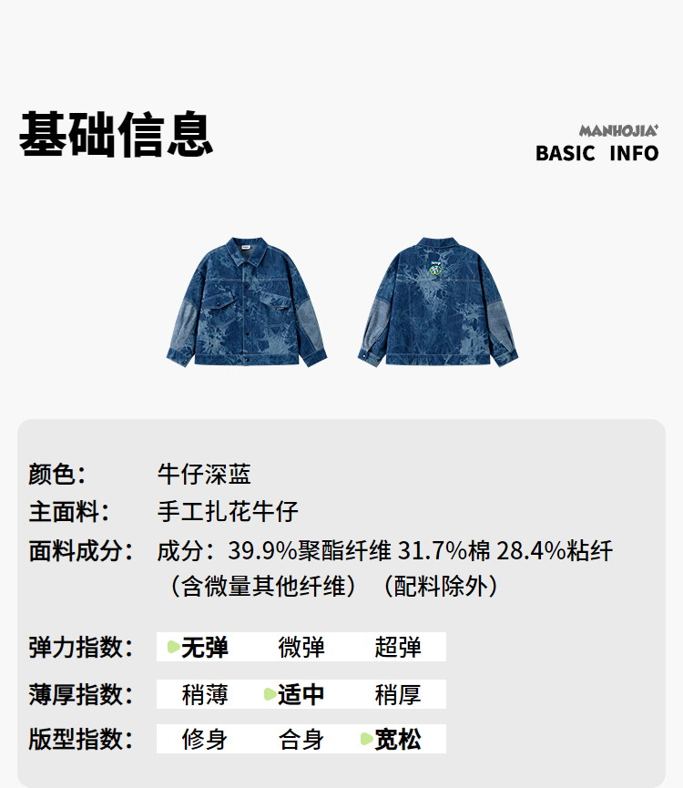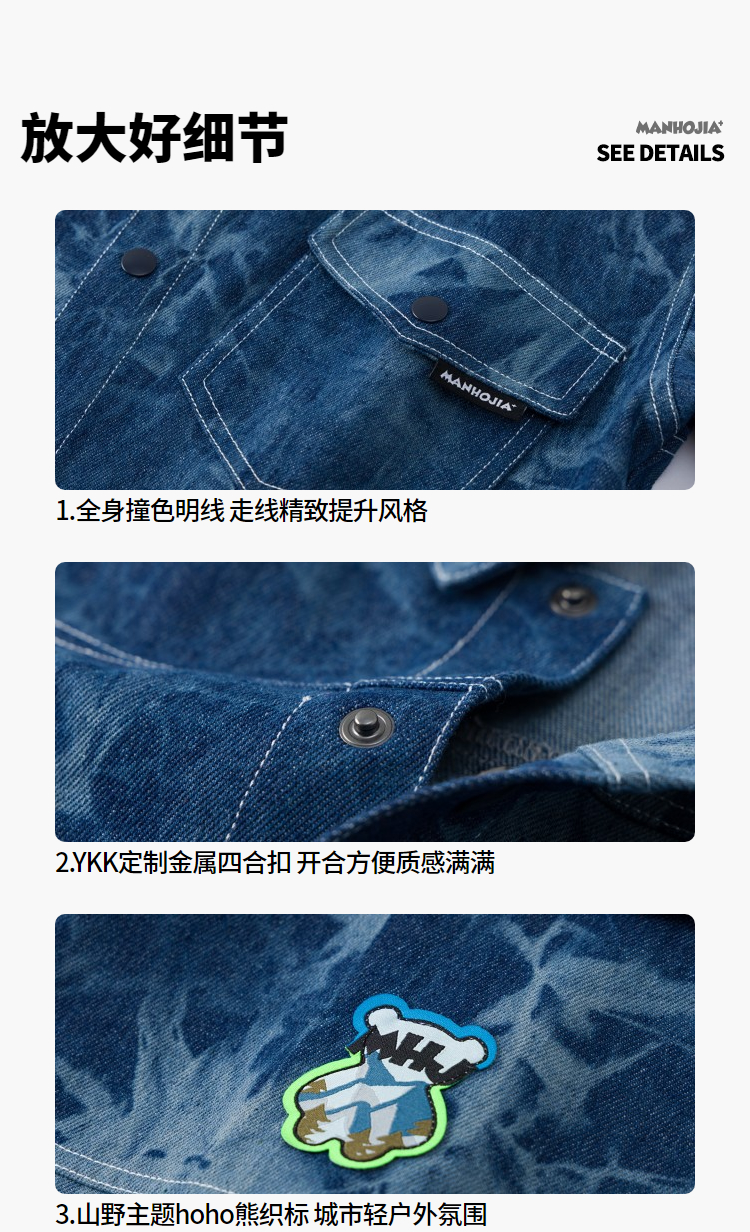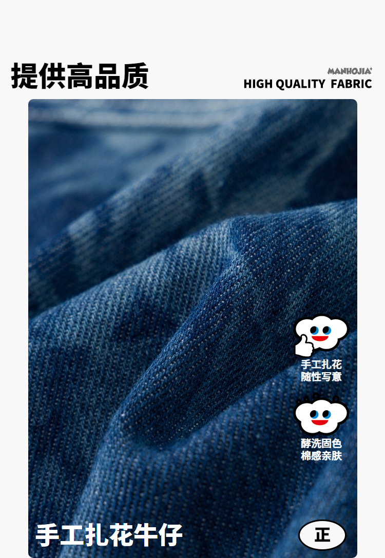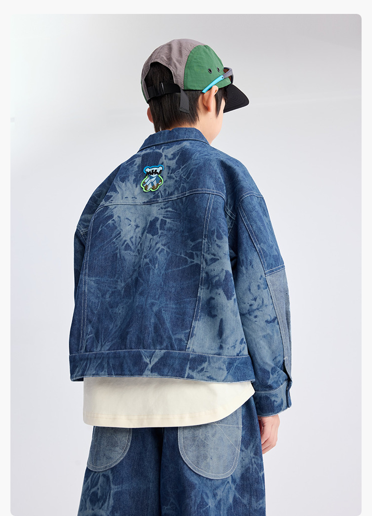 【熊盆友】漫画家25春靛蓝水墨画晕染手工扎花晕染工装牛仔外套