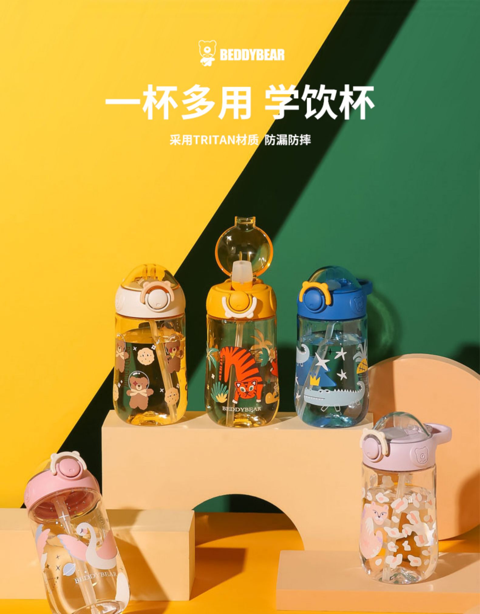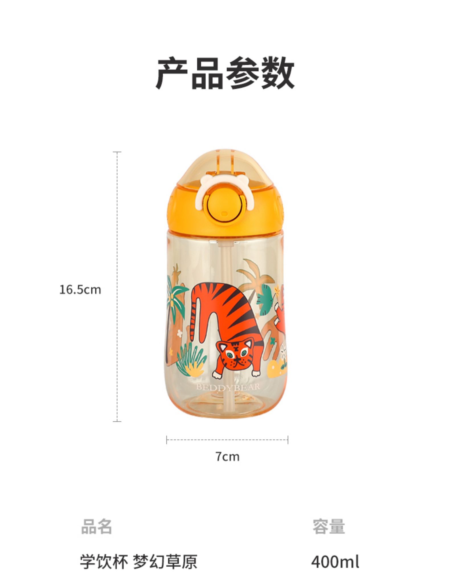 杯具熊梦幻草原儿童潮酷学饮杯可爱卡通吸管杯男女宝宝便携式水杯