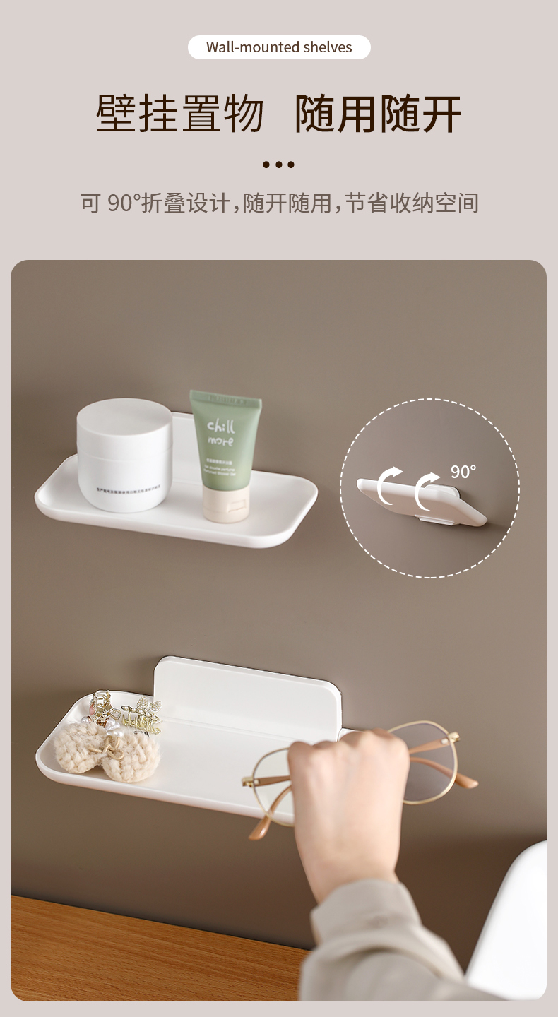FaSoLa免打孔宿舍折叠收纳架寝室用品置物架卫生间放置衣物收纳盘