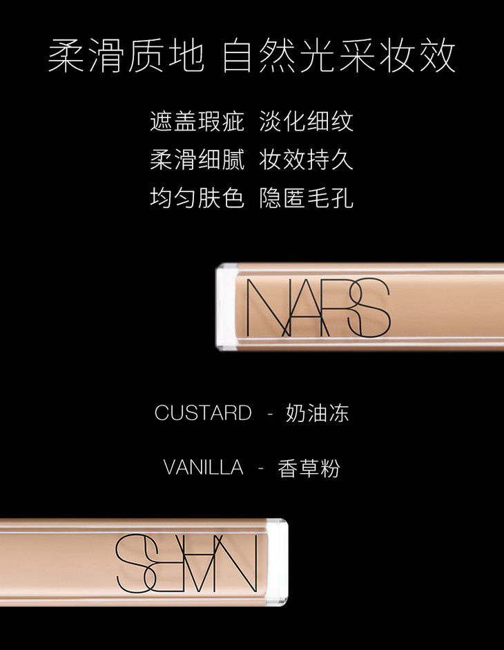 这款是NARS家人气遮瑕产品,遮瑕届的常青树,遮盖能力非常好同时滋润度也很好,不容易卡纹八干,园园把色号功课给你们准备好啦!