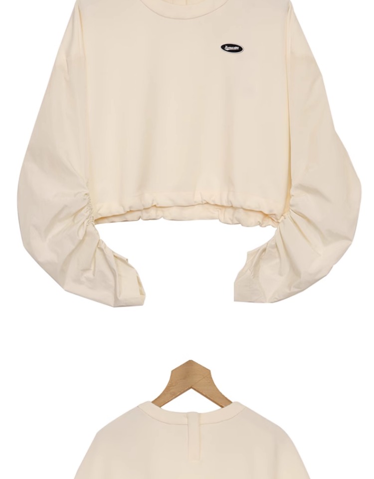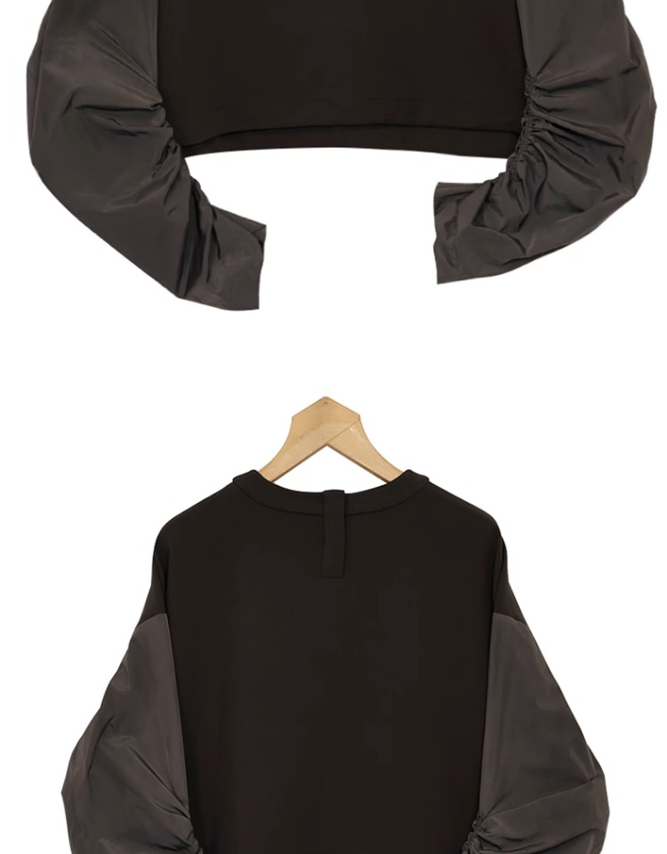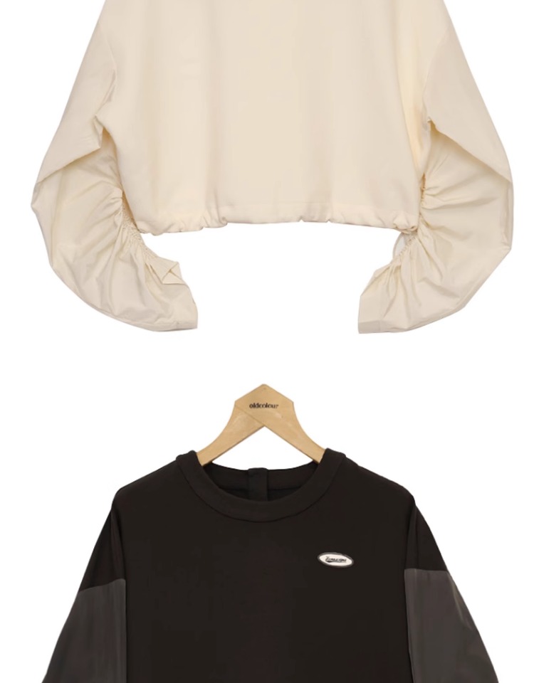 oldcolour纯色T恤春季新款设计感圆领长袖短款上衣女P12023234