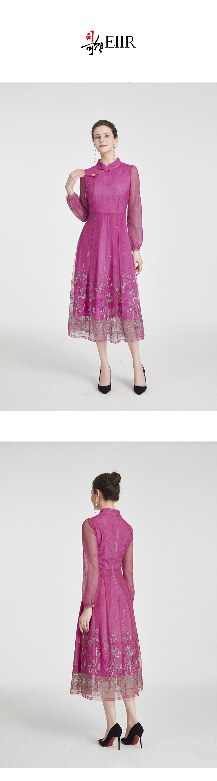司歌国风改良旗袍连衣裙刺绣长袖裙A881298