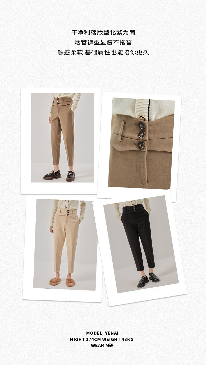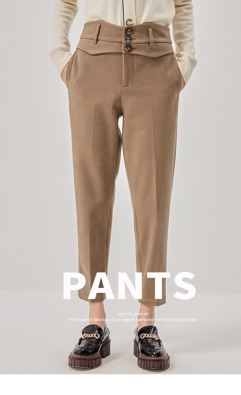 oldcolour冬季新款纯色高腰显瘦直筒百搭气质休闲裤女O44073428
