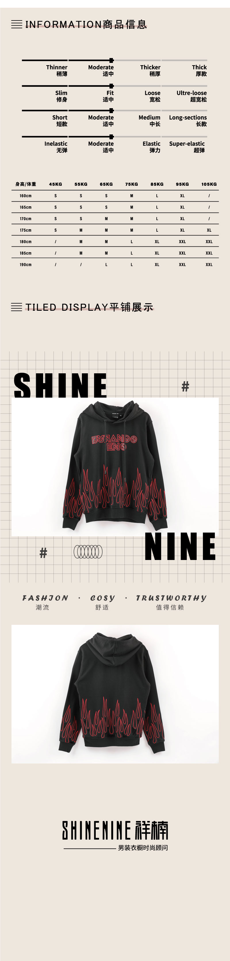 E19W81MKD203字母火焰帽衫长袖卫衣