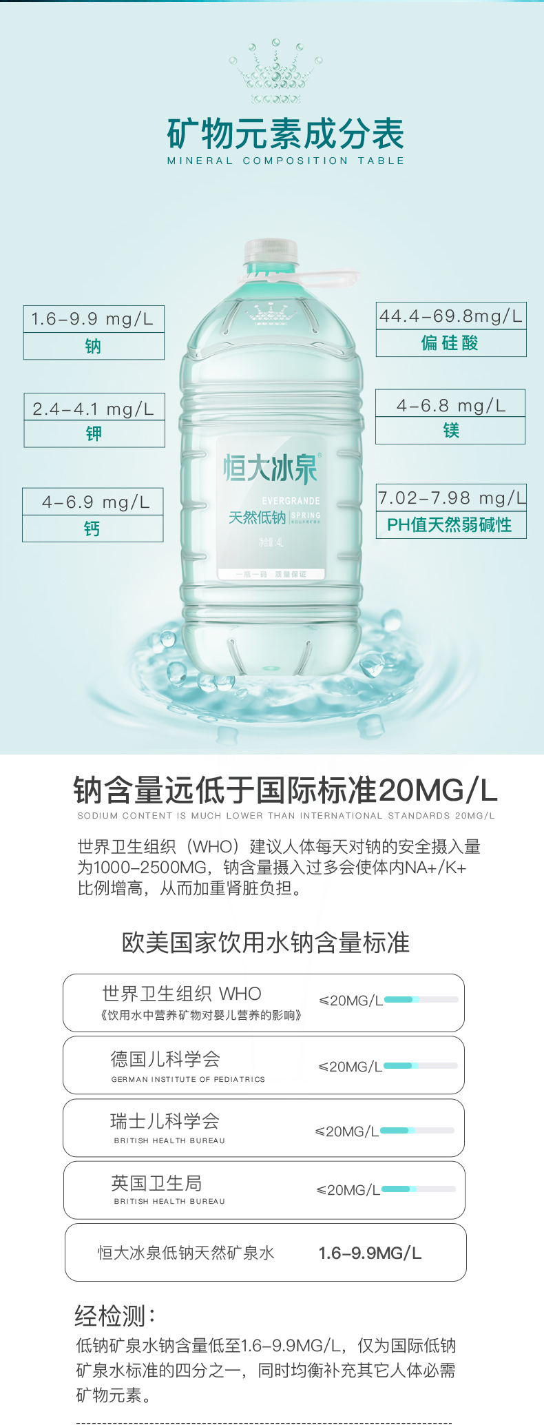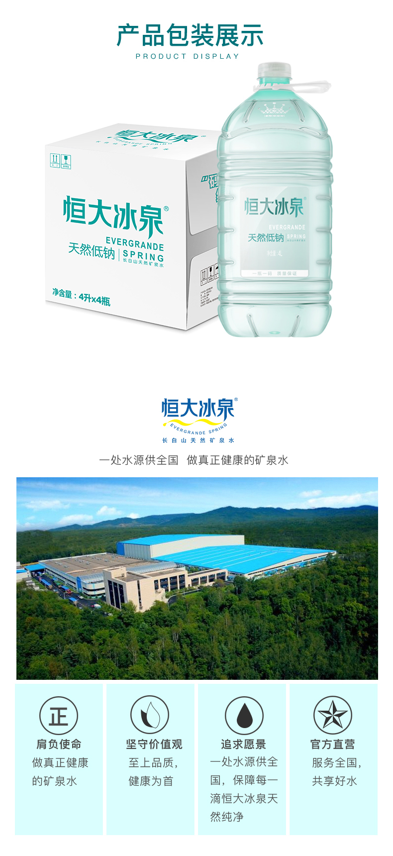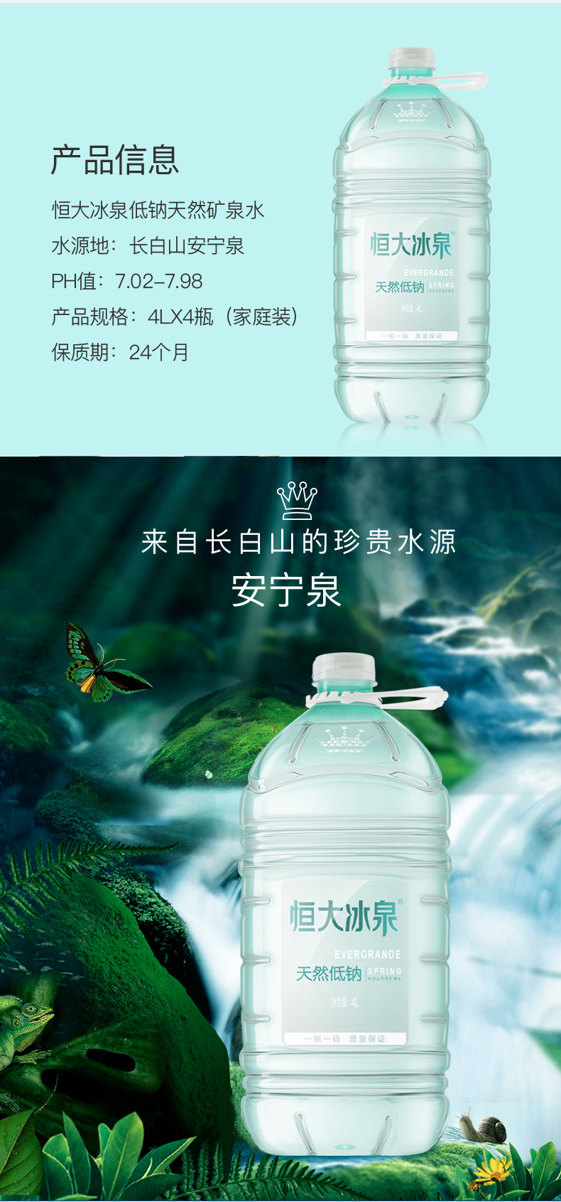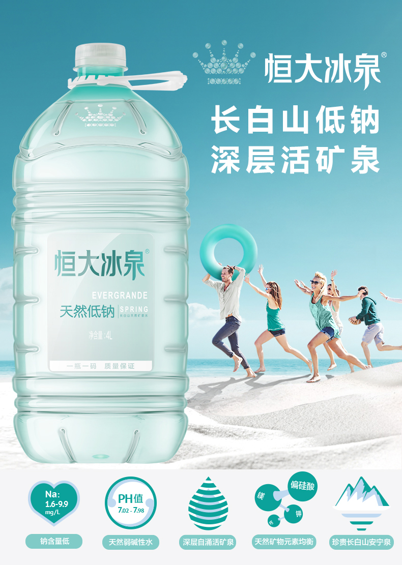 恒大冰泉 长白山天然低钠4L*4桶 矿泉水 天然饮用水 低钠矿泉水