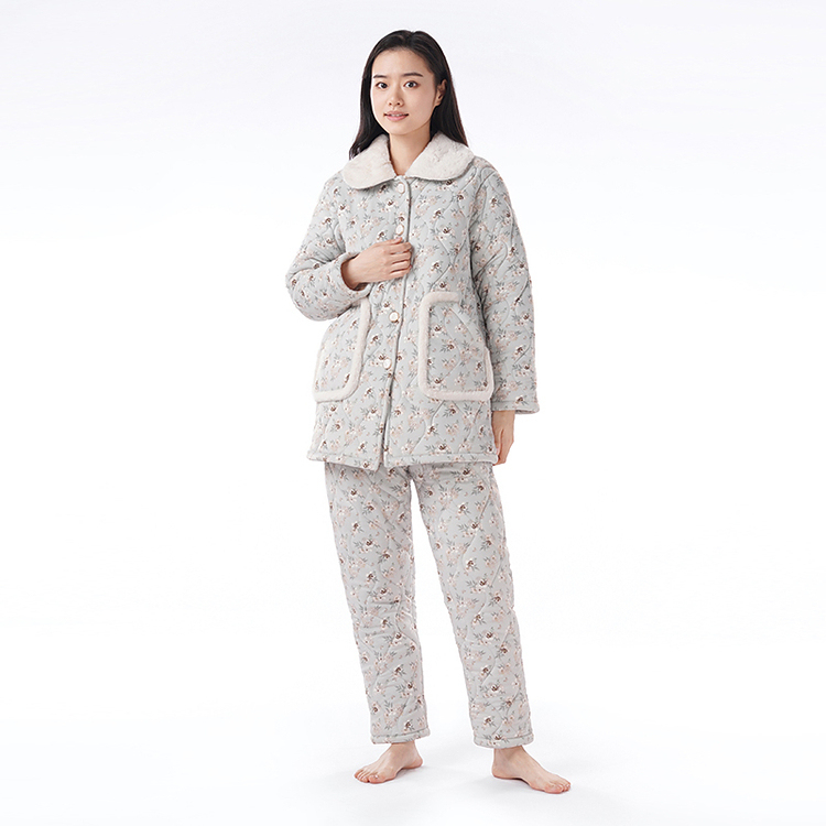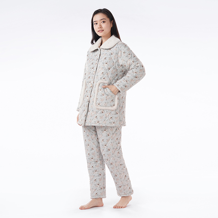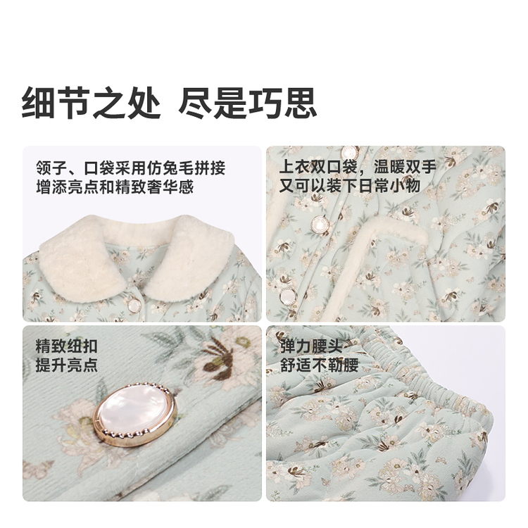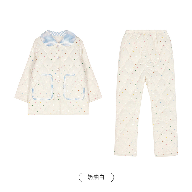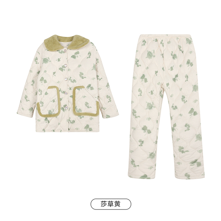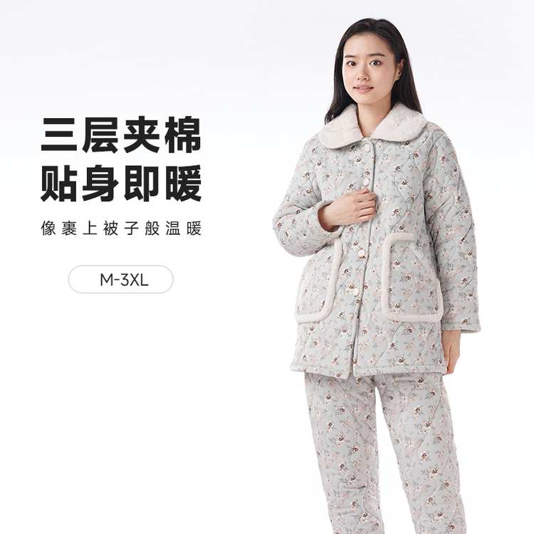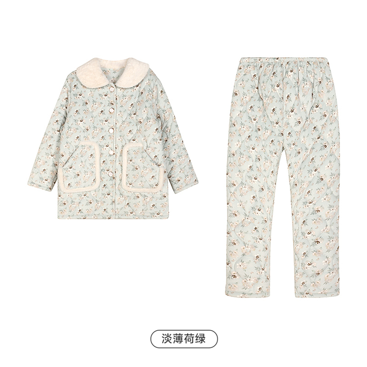 都市丽人欧绵绒夹棉睡衣女士家居服长袖长裤加厚夹棉套装LHH1M7