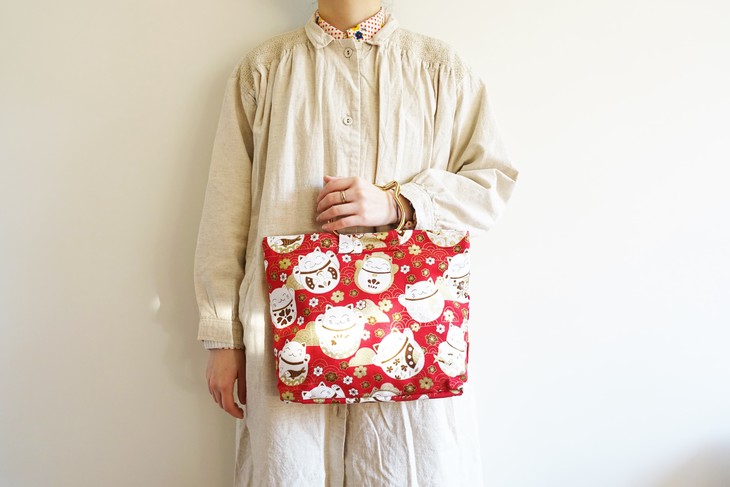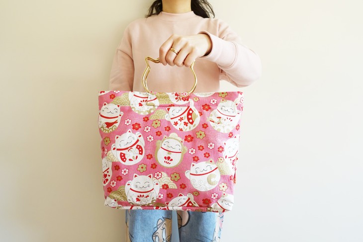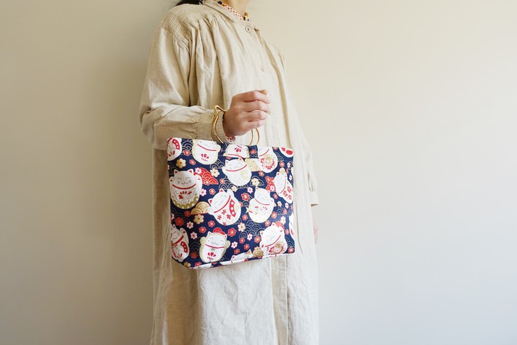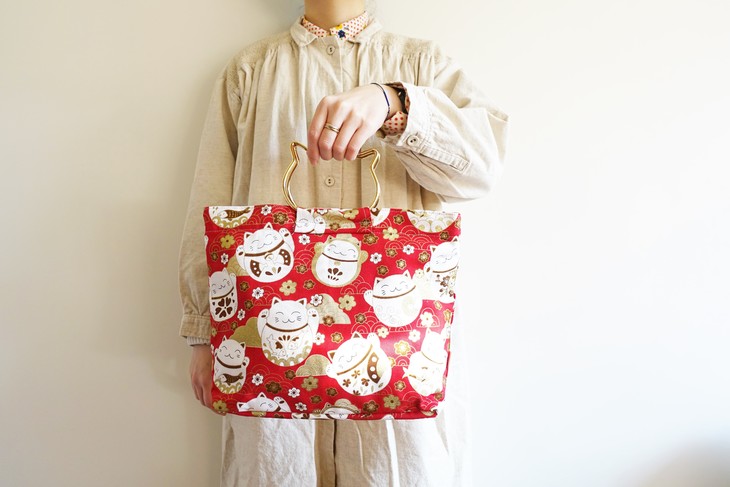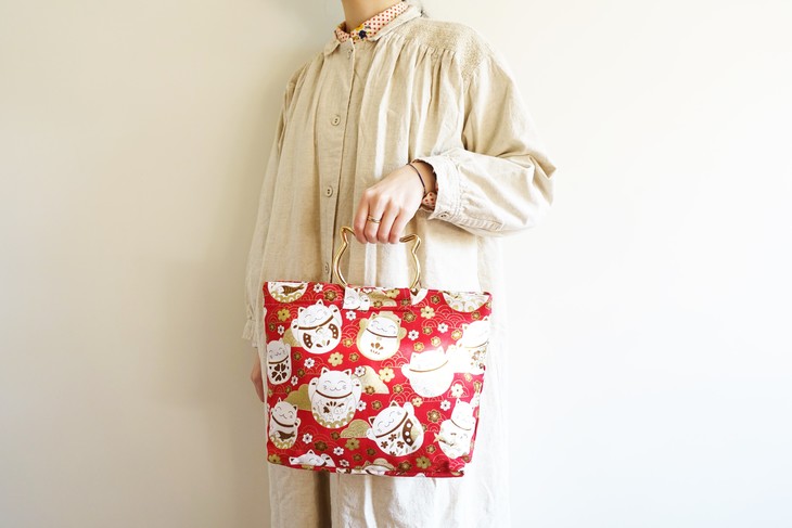 HUJI祤集猫头柄手提包风の花金扇招财猫