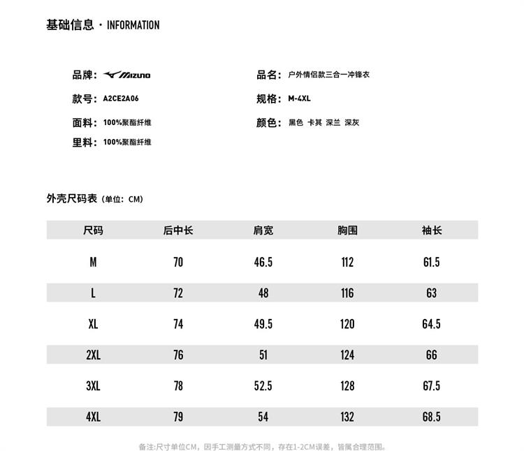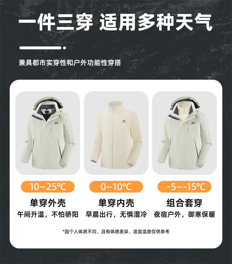 【369秒杀!】美津浓秋冬男女户外防风保暖三合一冲锋衣情侣款两件套抓绒冲锋衣A2CE2A06