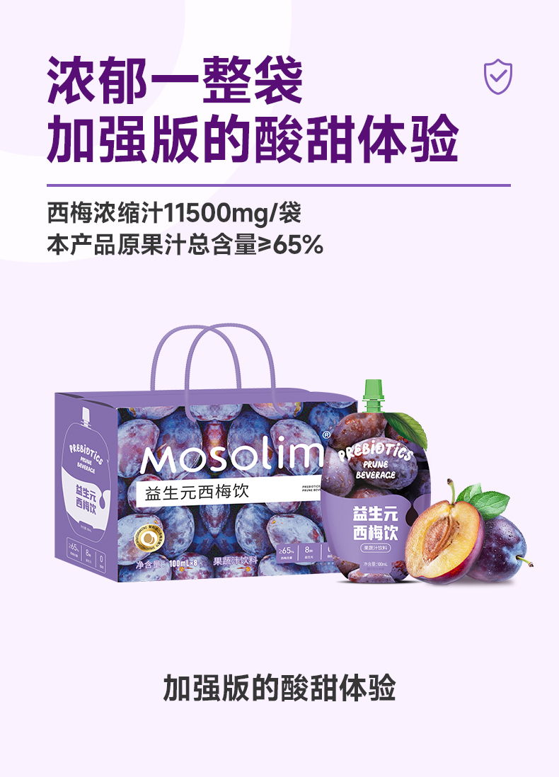 Mosolim益生元西梅饮(100ml*8包/箱)生产日期: 3月