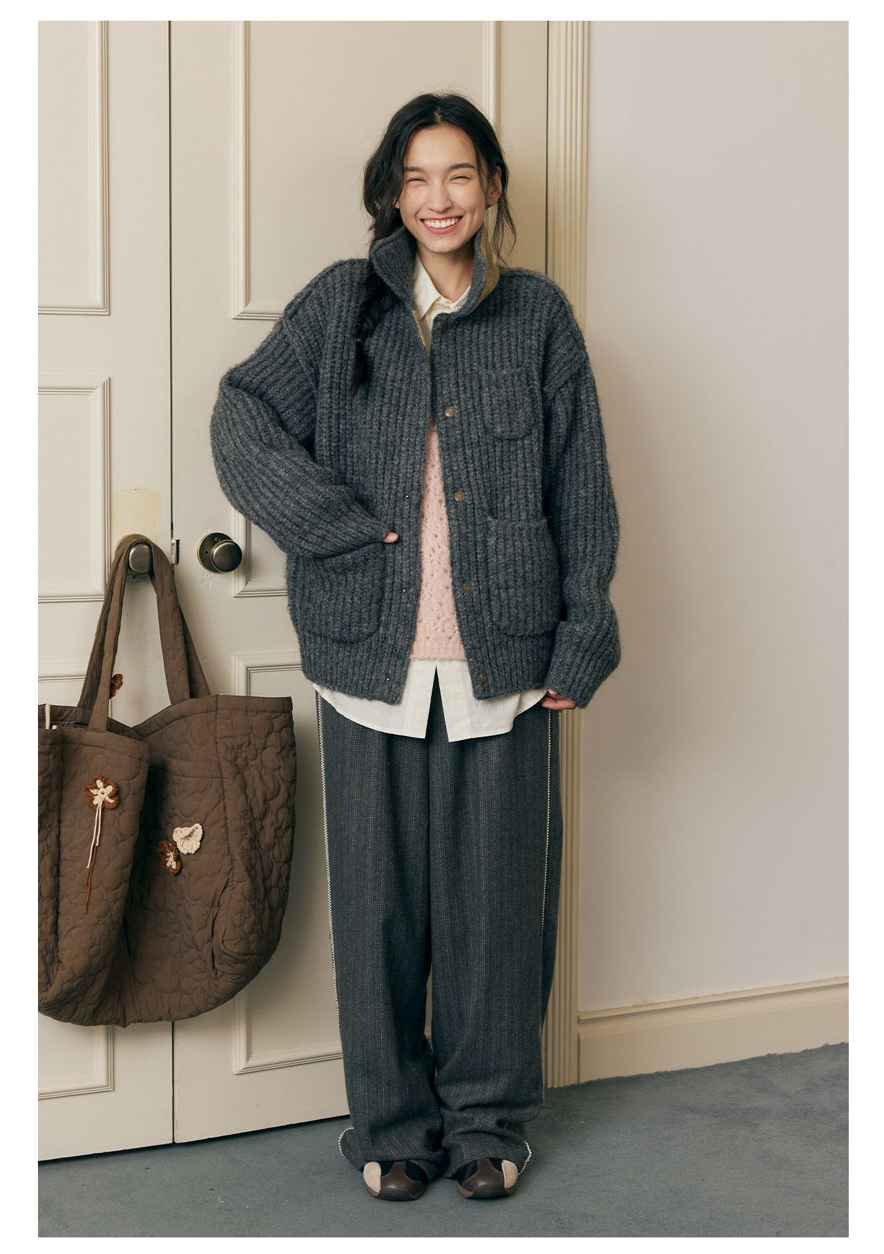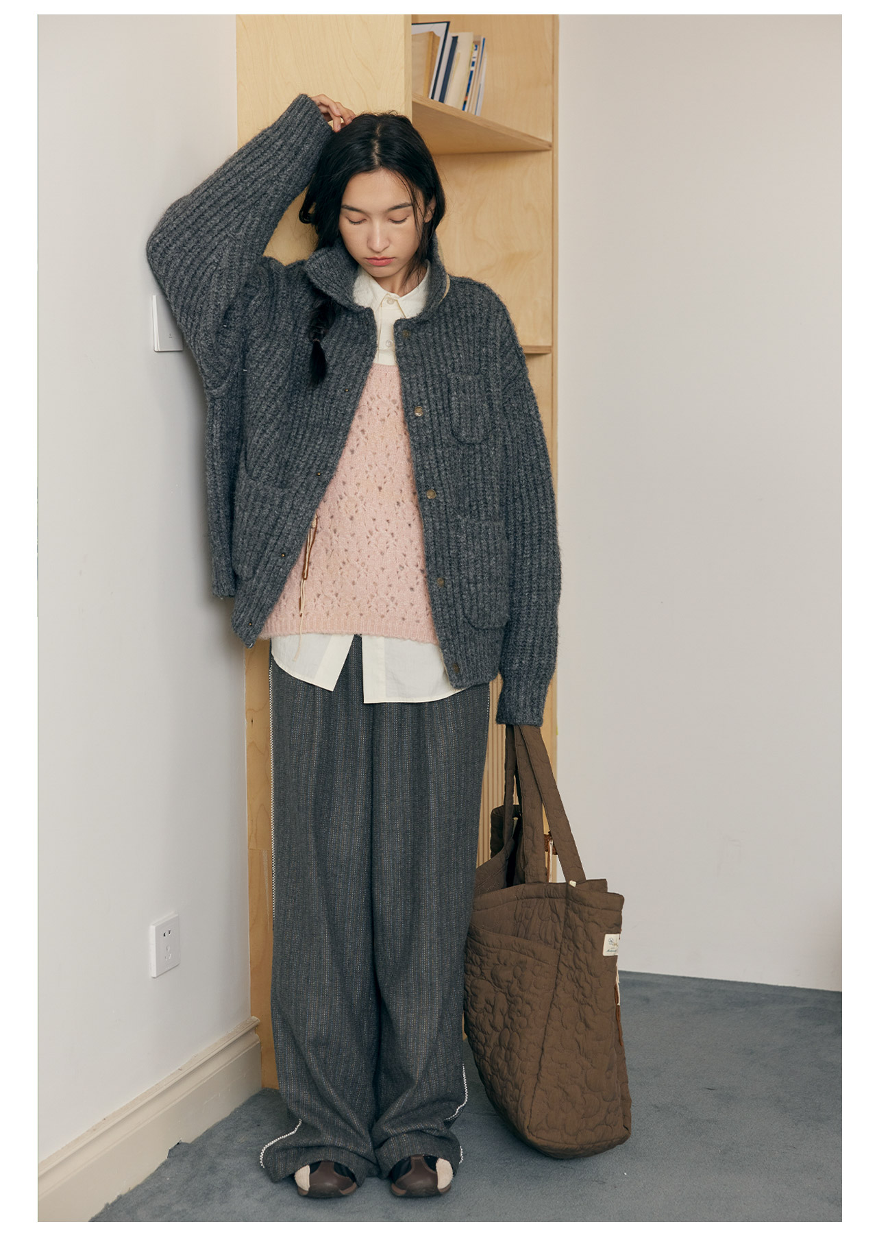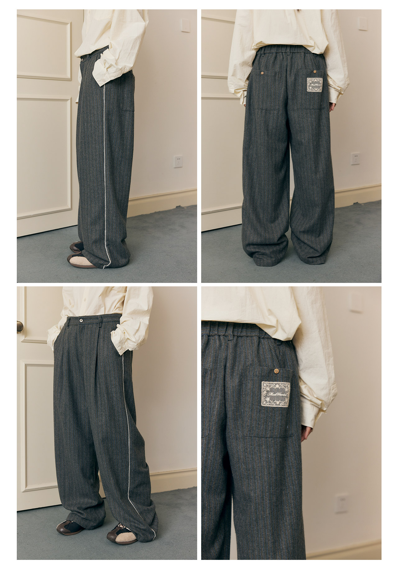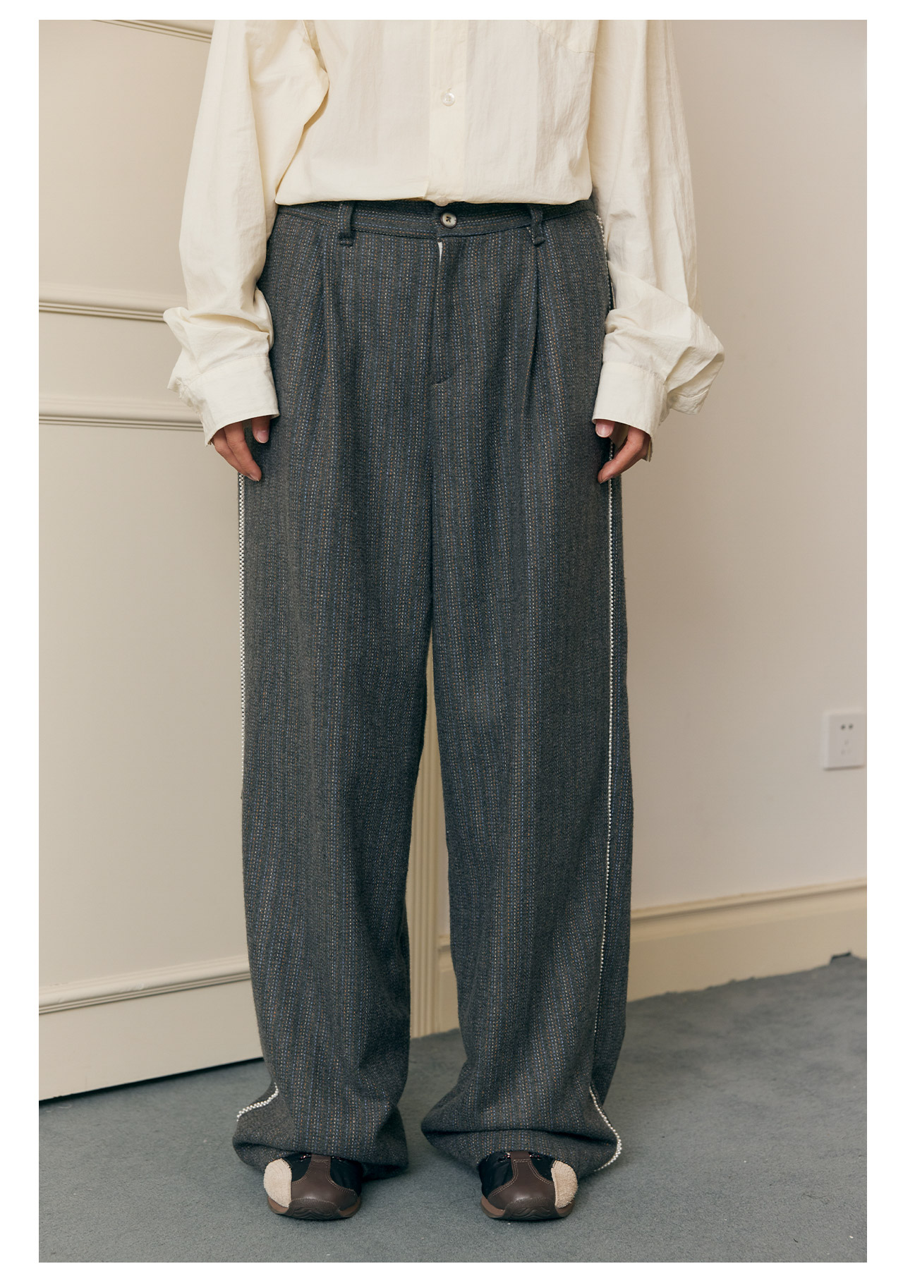 mostwantedlab彩虹/M2434102/条纹毛呢基础休闲西装裤