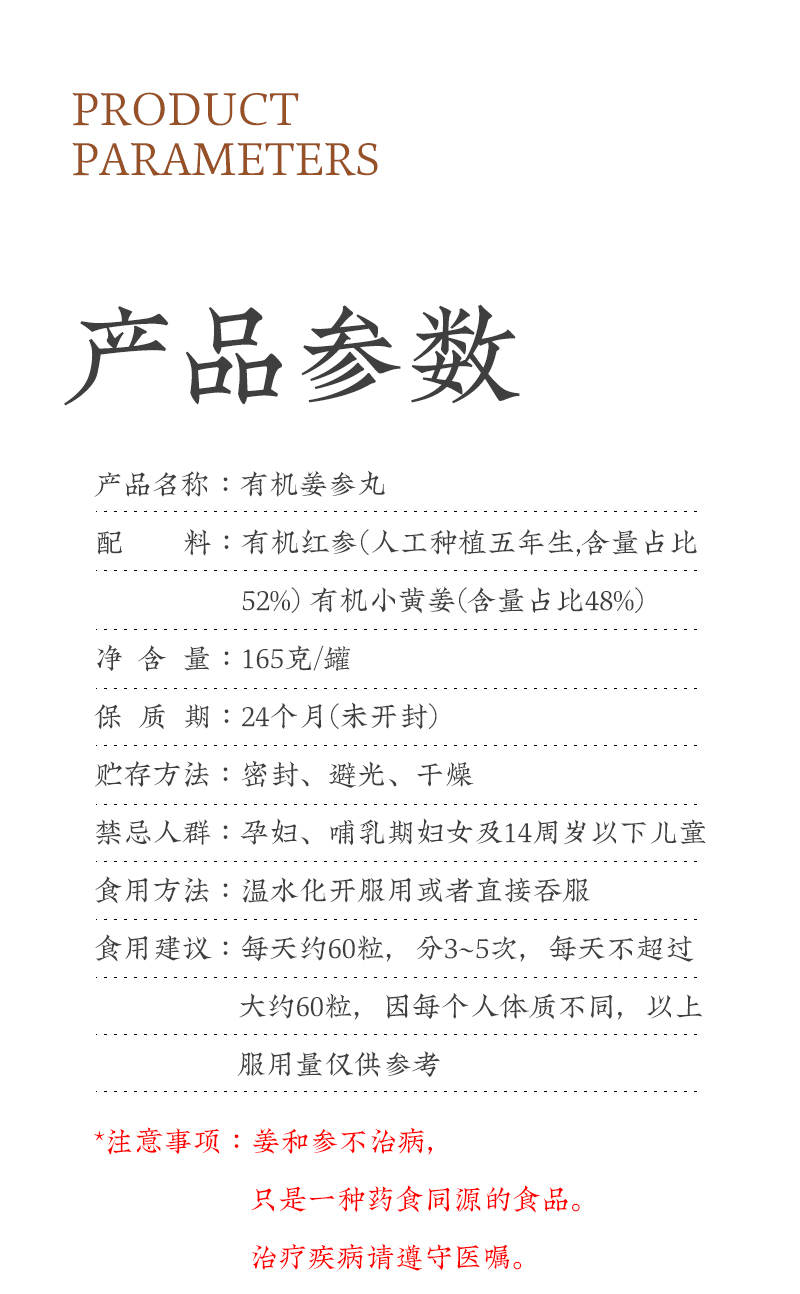 有机姜参丸165克 | 云南罗平有机小黄姜长白山红参