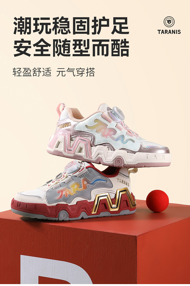 泰兰尼斯儿童板鞋2026春季新款男女童时尚休闲鞋中大童旋钮扣鞋子T02D6A8740