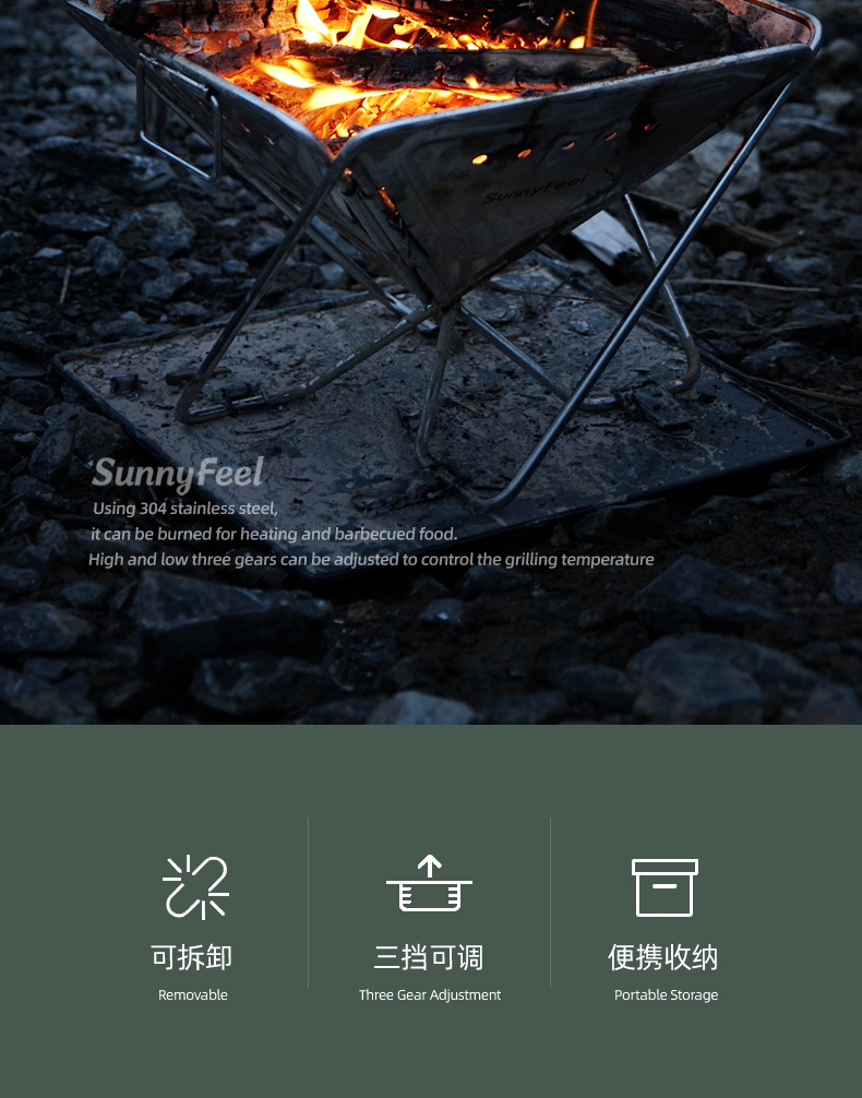 SunnyFeel户外露营折叠烧烤炉野餐野营焚火台室外露宿烤架焚火架