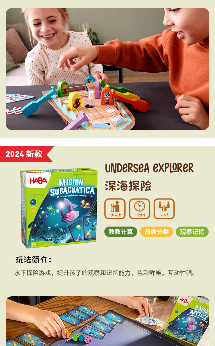 HABA 深海探险 儿童桌游 适合7岁+ 组合算术 观察记忆 德国品牌-1307017002
