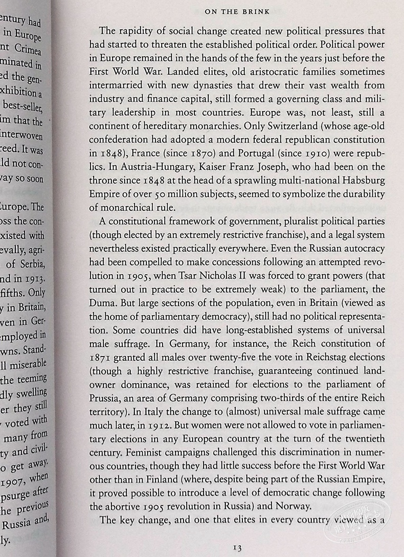 'Superb ... likely to become a classic' Observer In the summer of 1914 most of Europe plunged into a war so catastrophic that it unhinged the continent's politics and beliefs in a way that took generations to recover from. The disaster terrified its survivors, shocked that a civilization that had blandly assumed itself to be a model for the rest of the world had collapsed into a chaotic savagery beyond any comparison.