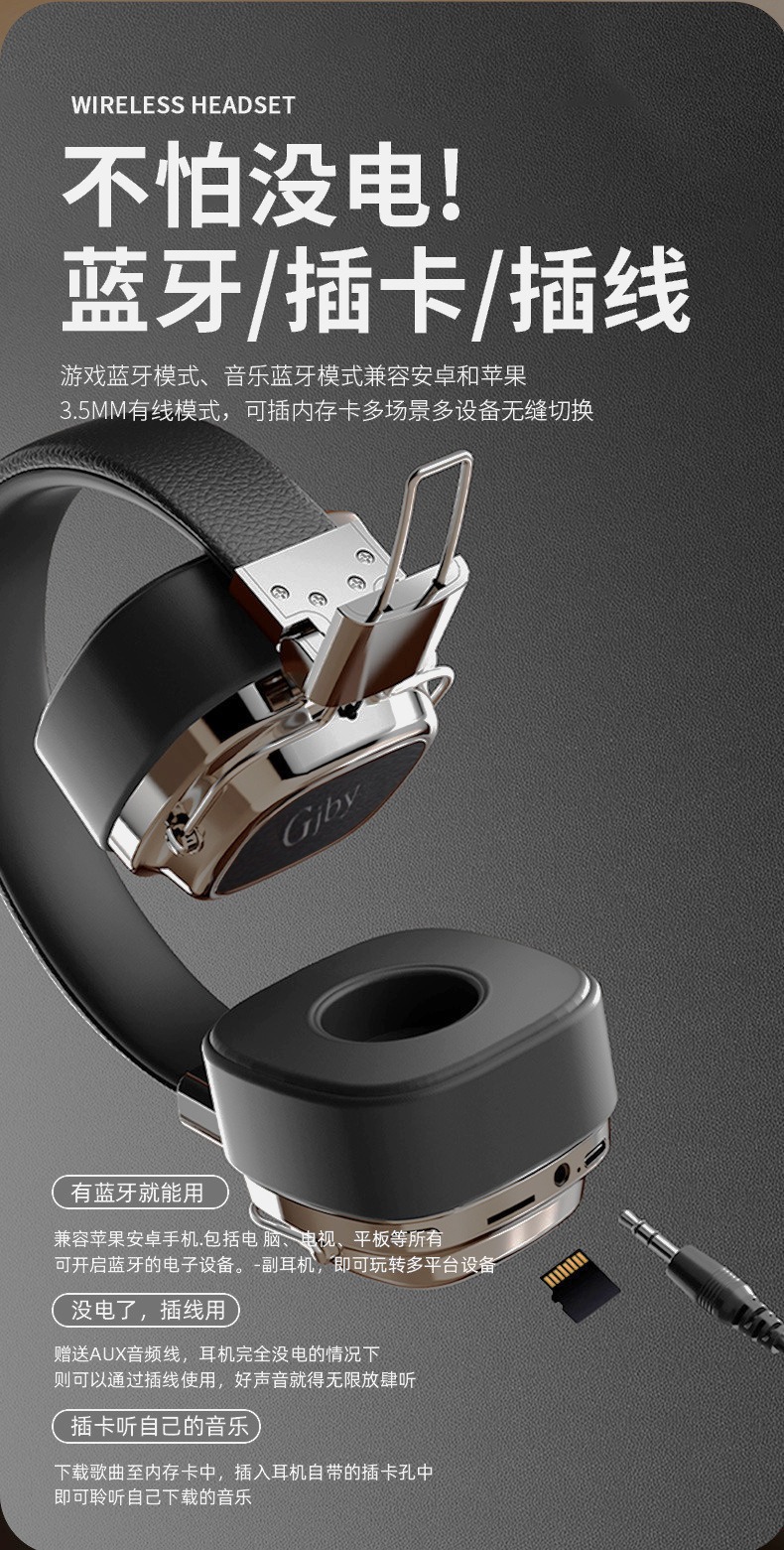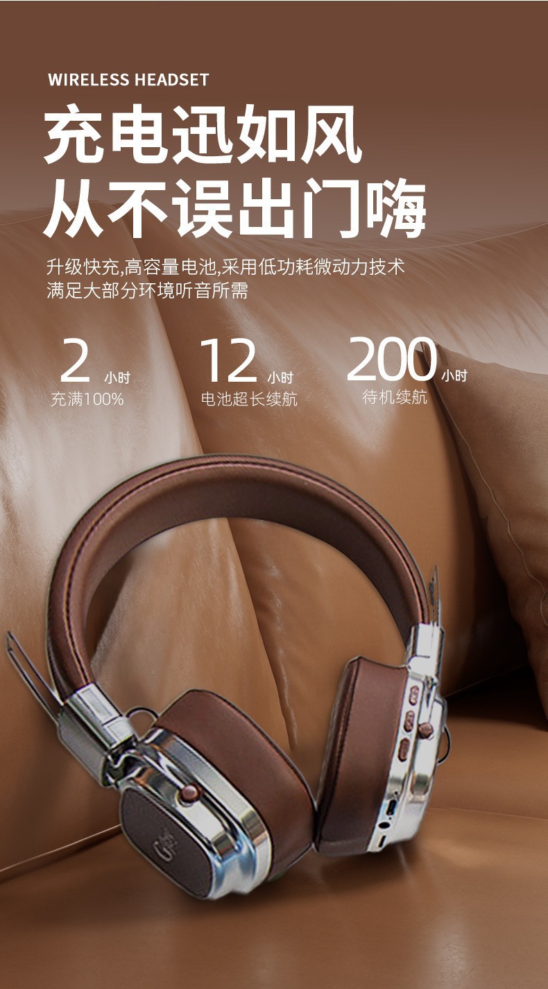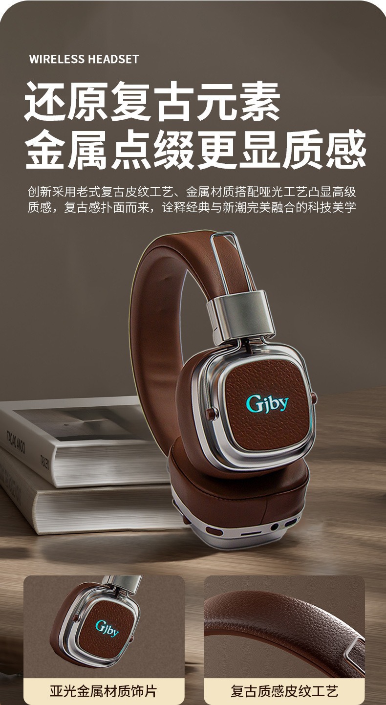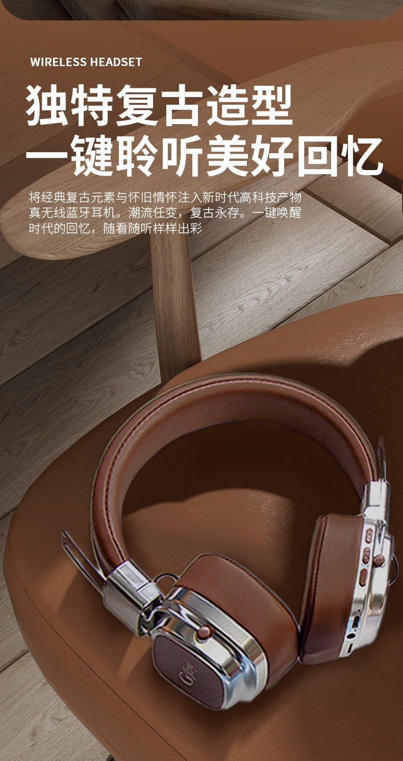 新款简约头戴式【复古无线蓝牙耳机usb】长续航便携式学生游戏5.3蓝牙 情人节礼物