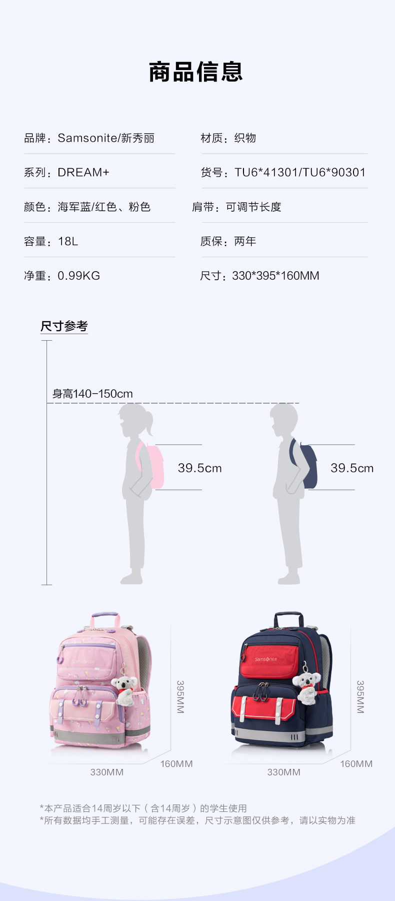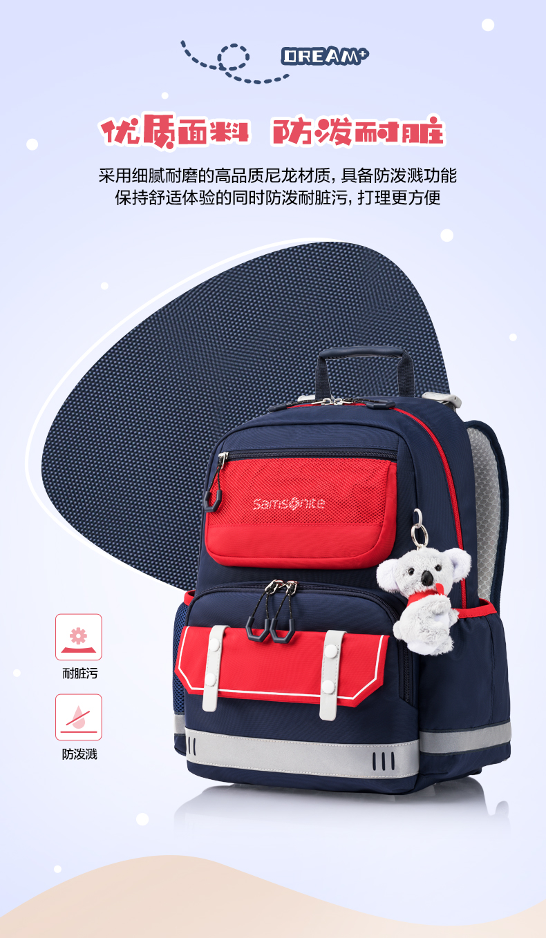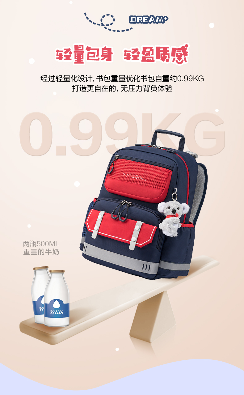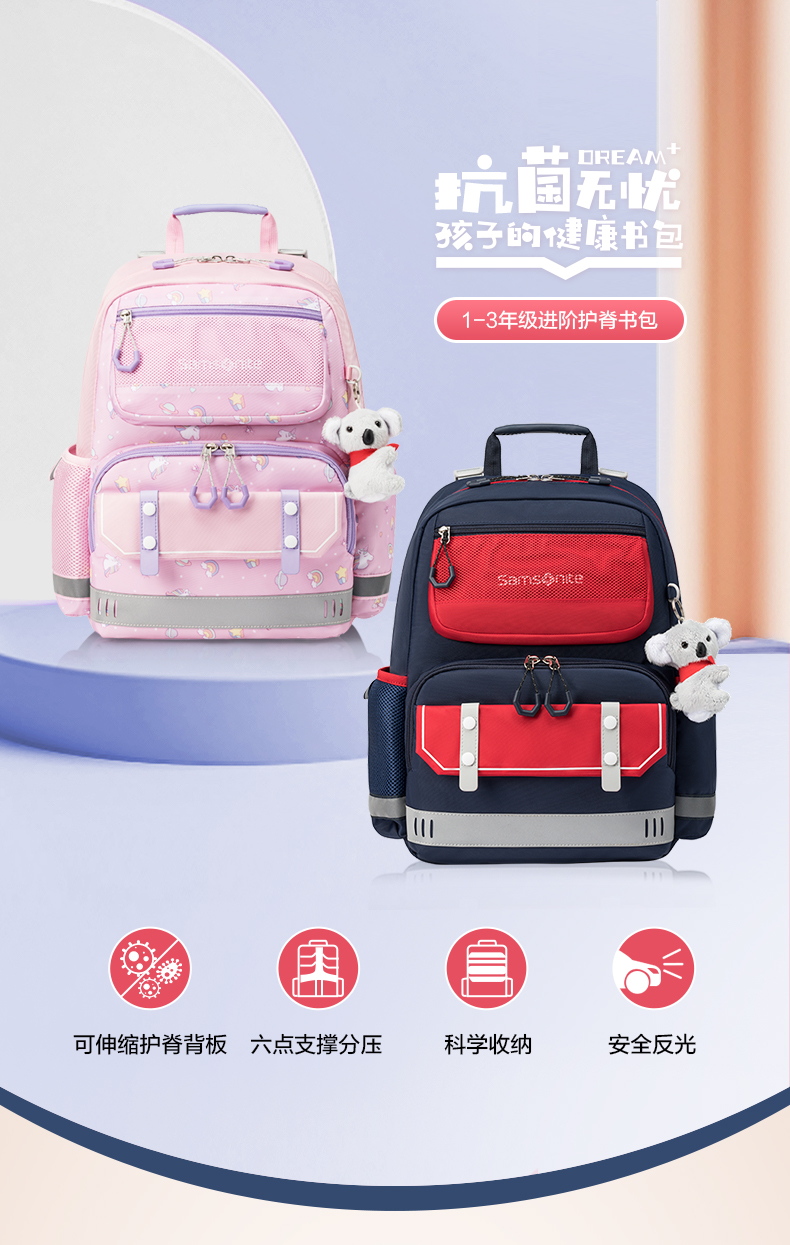 新秀丽DREAM+系列轻便内里抗菌面料健康护脊儿童书包 TU6*301