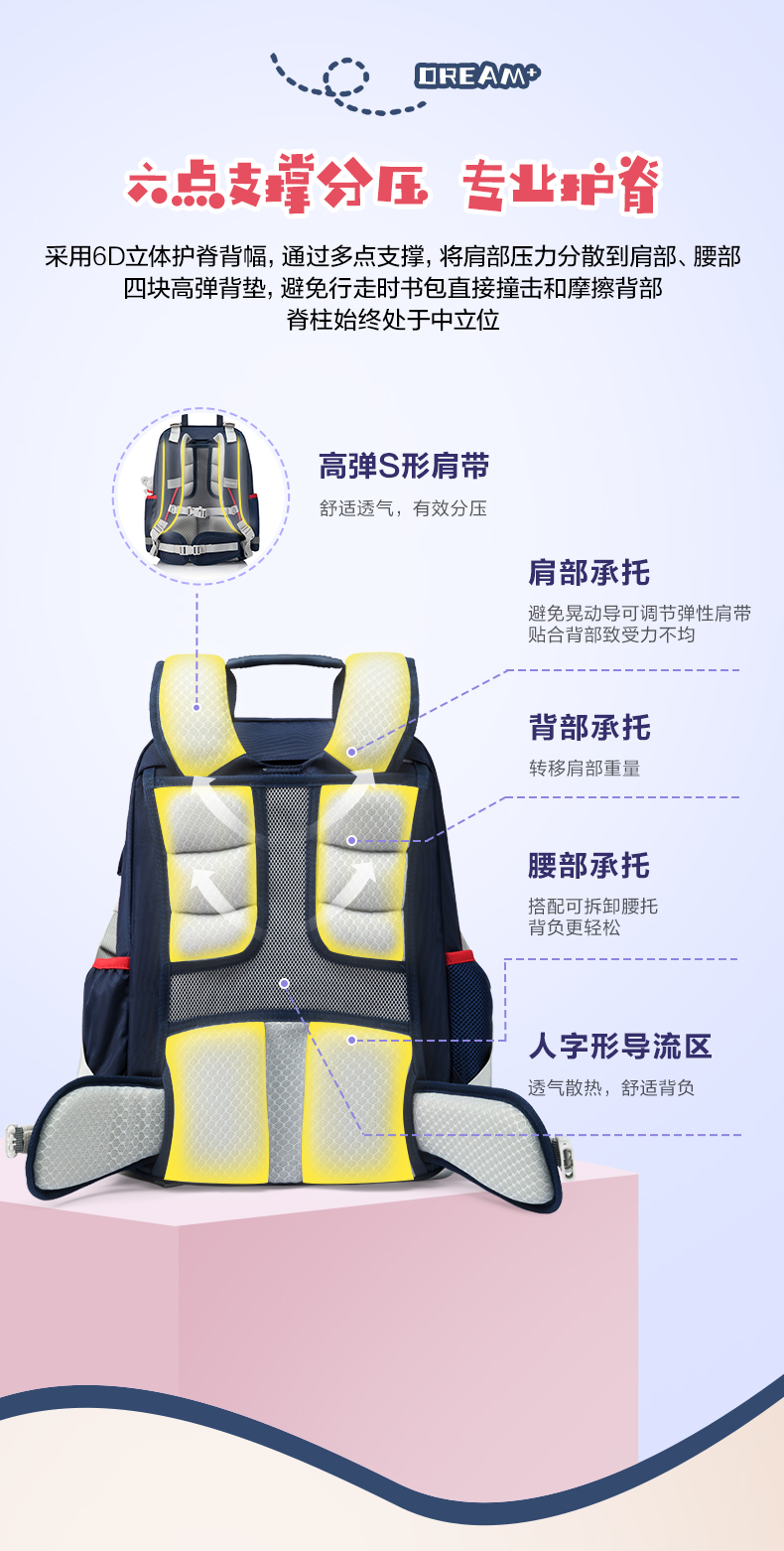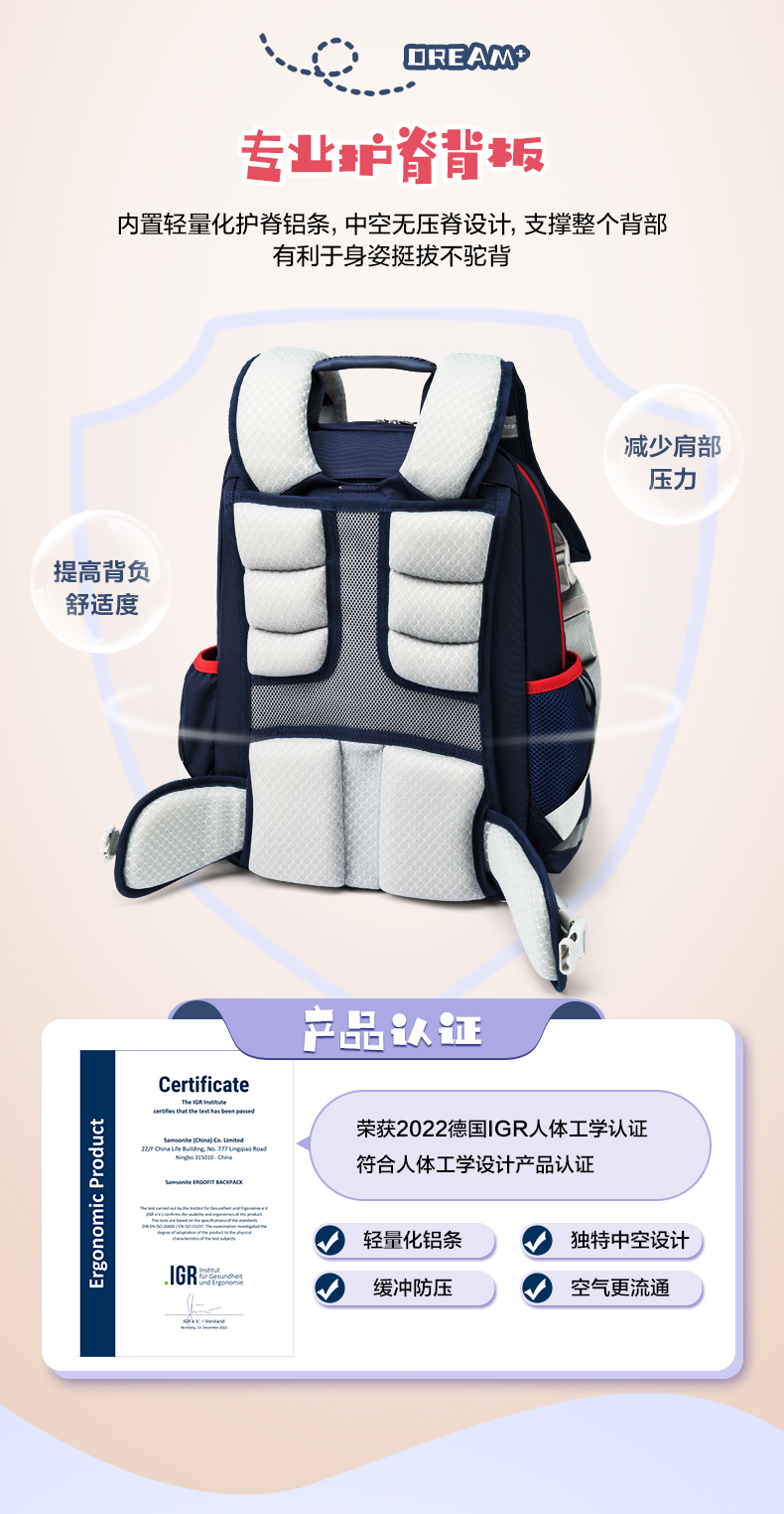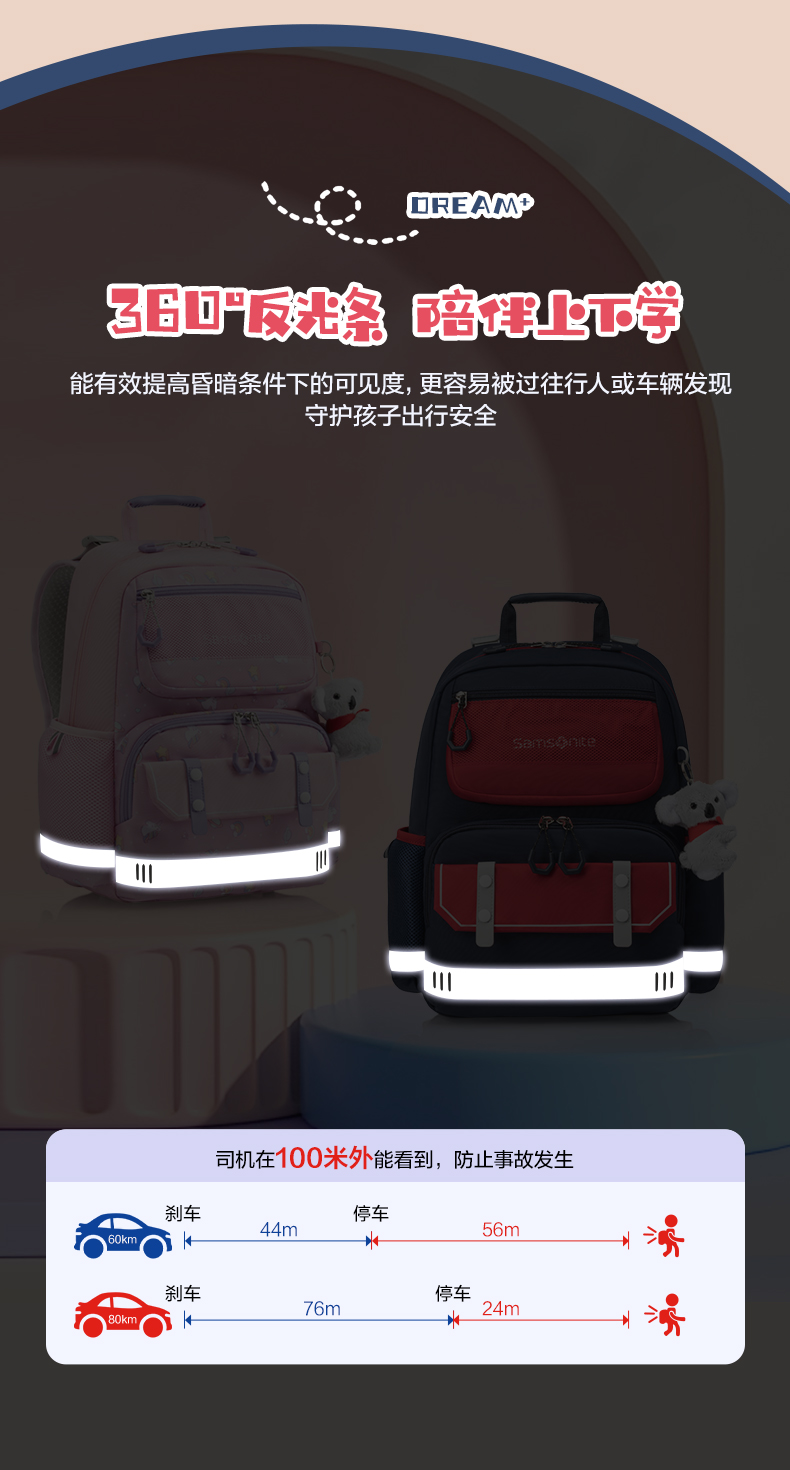 新秀丽DREAM+系列轻便内里抗菌面料健康护脊儿童书包 TU6*301