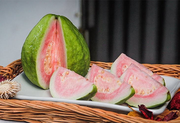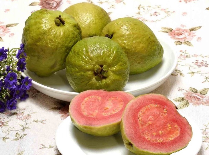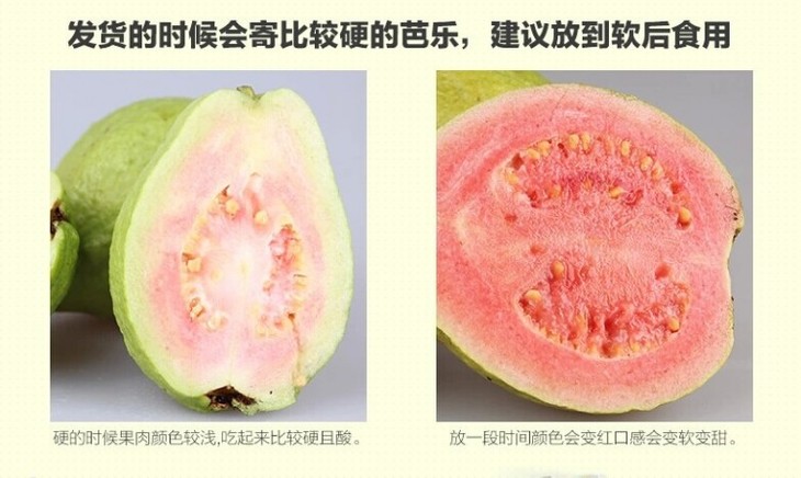 番石榴果形有球形、椭圆形、卵圆形及洋梨形,果皮普通为绿色、红色、黄色,果肉有白色、红色、黄色等。肉质细嫩、清脆香甜、爽口舒心、常吃不腻,是养颜美容的最佳水果。