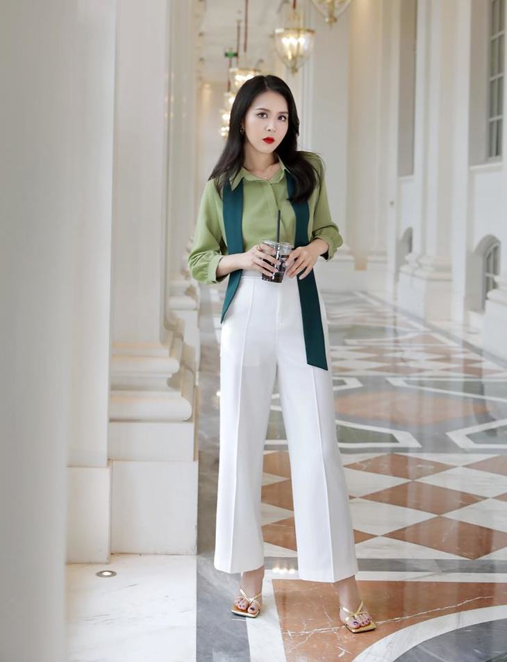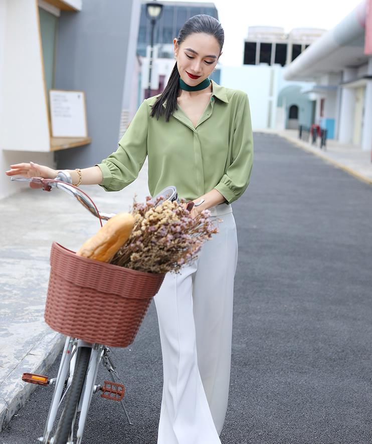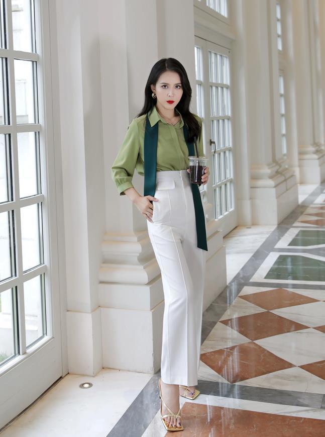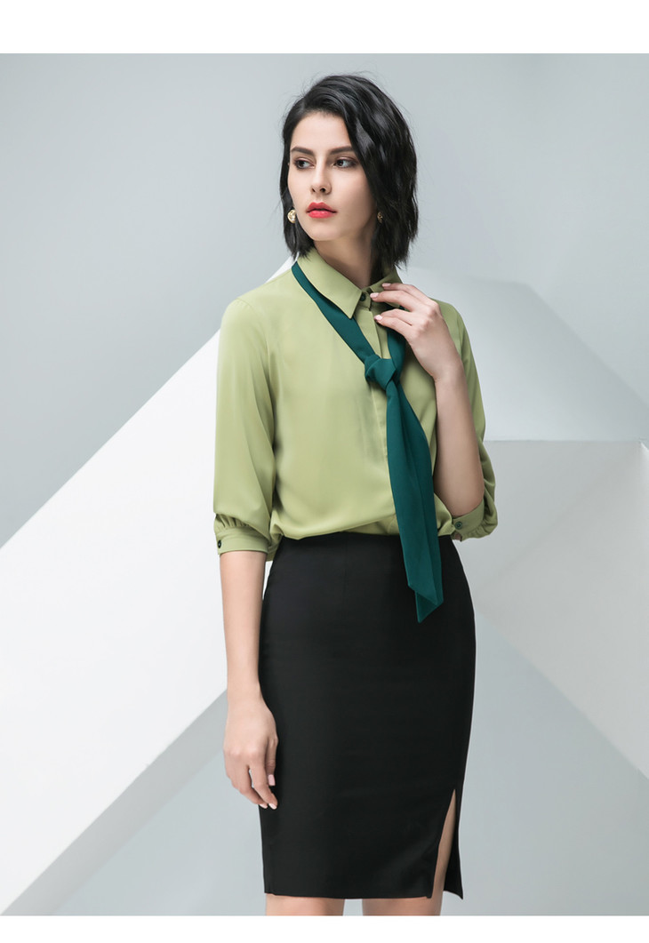 IWY/绿色短袖衬衫黑色半裙套装B32+S10242