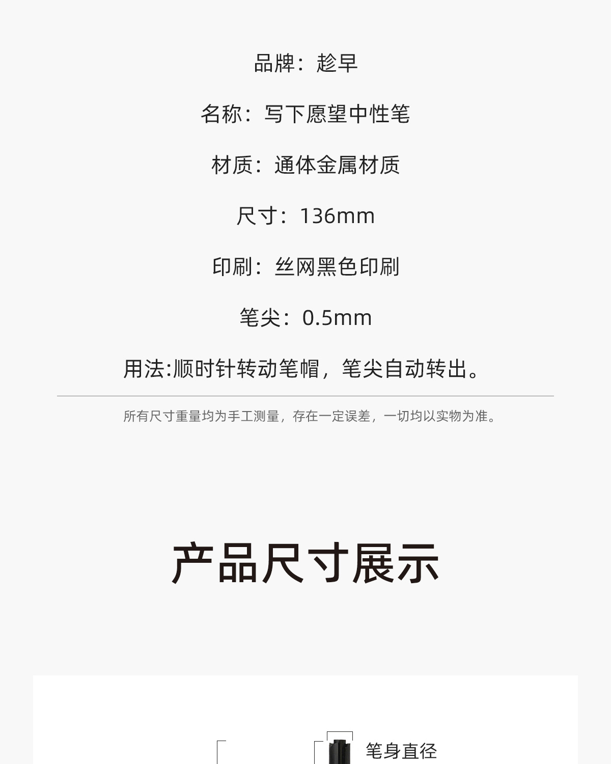 【趁早文创】趁早写下愿望中性笔创意简约0.5mm金属质感签字笔黑色办公商务碳素笔低阻尼顺滑不断墨学生考试笔