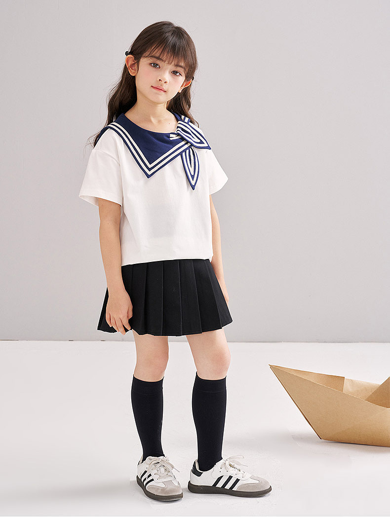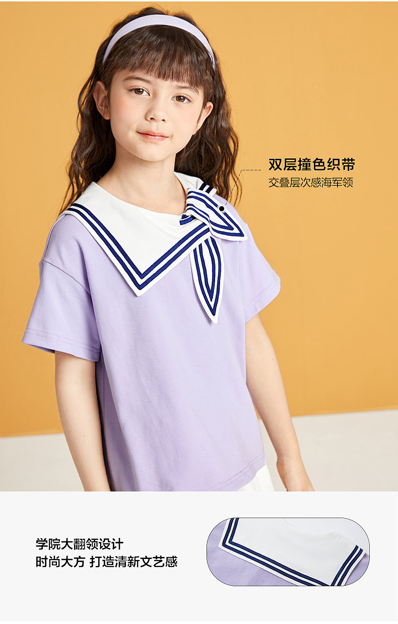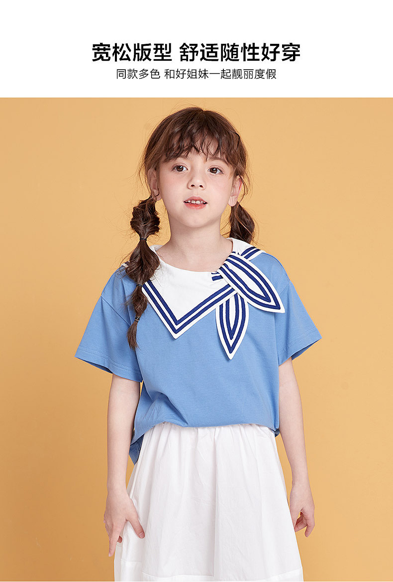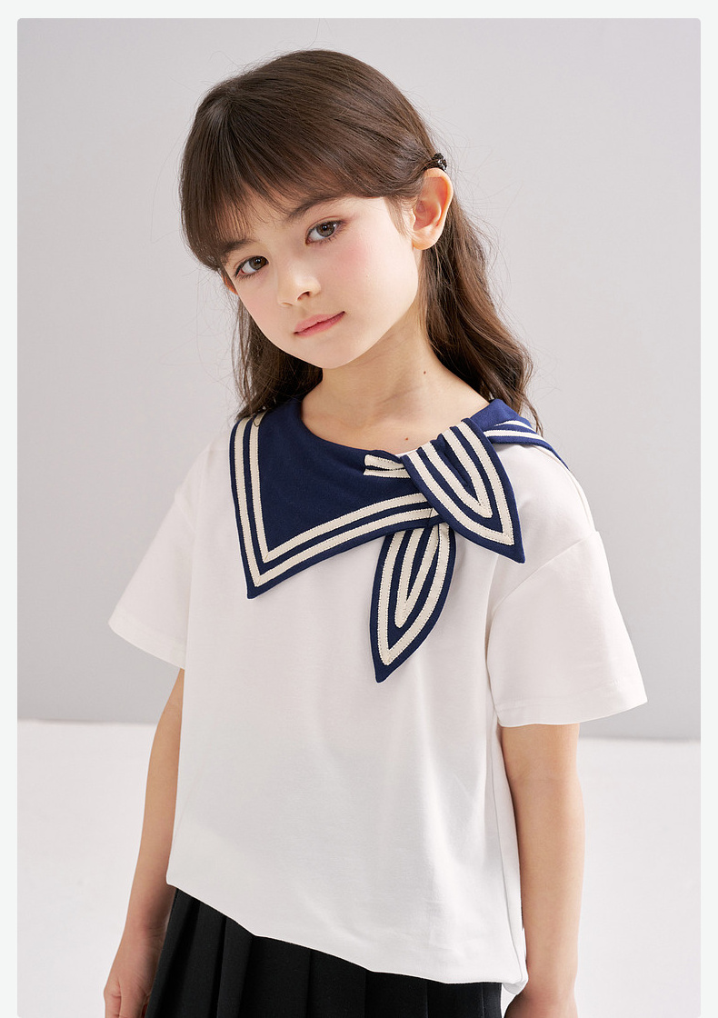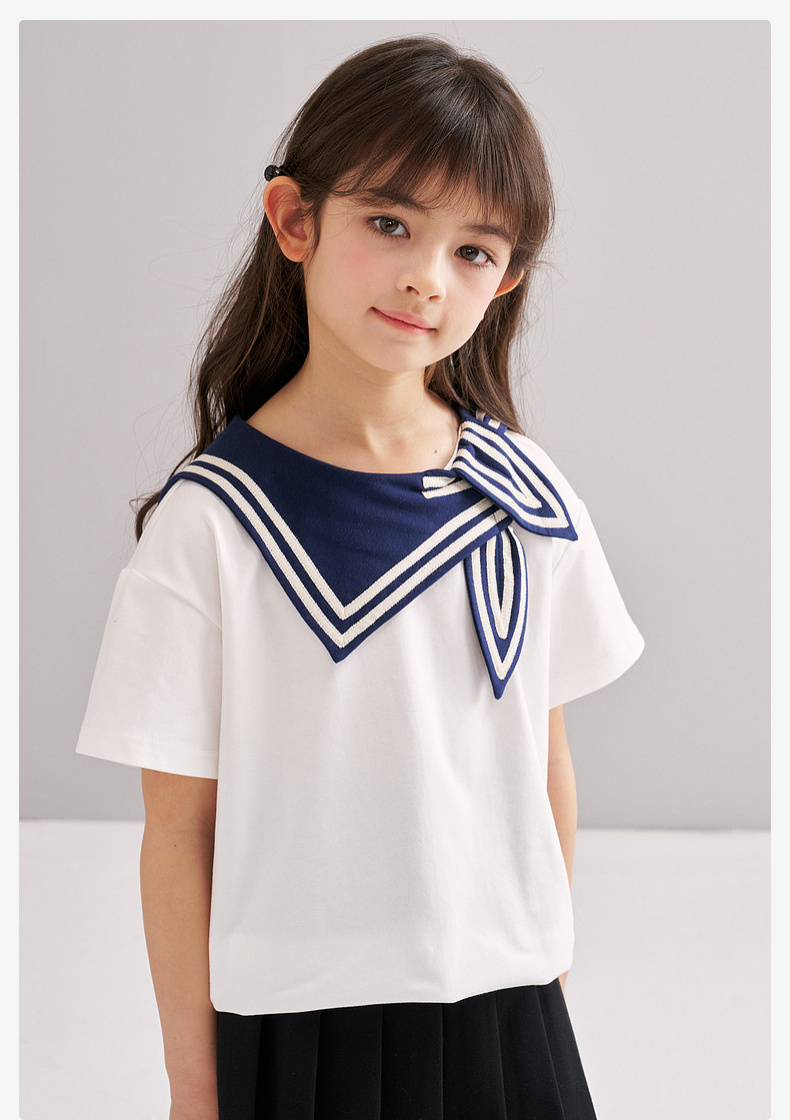 笛莎/Deesha 松饼熊2026年夏季新款童装女童时尚学院风海军领短袖T恤