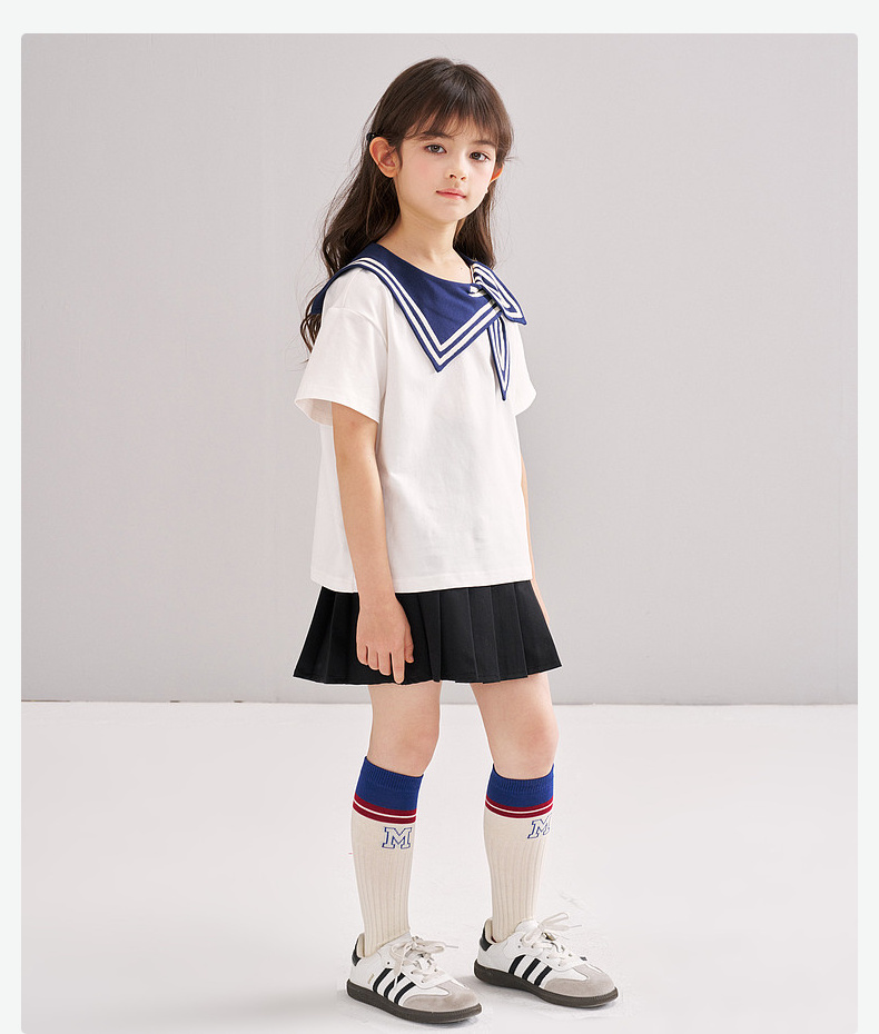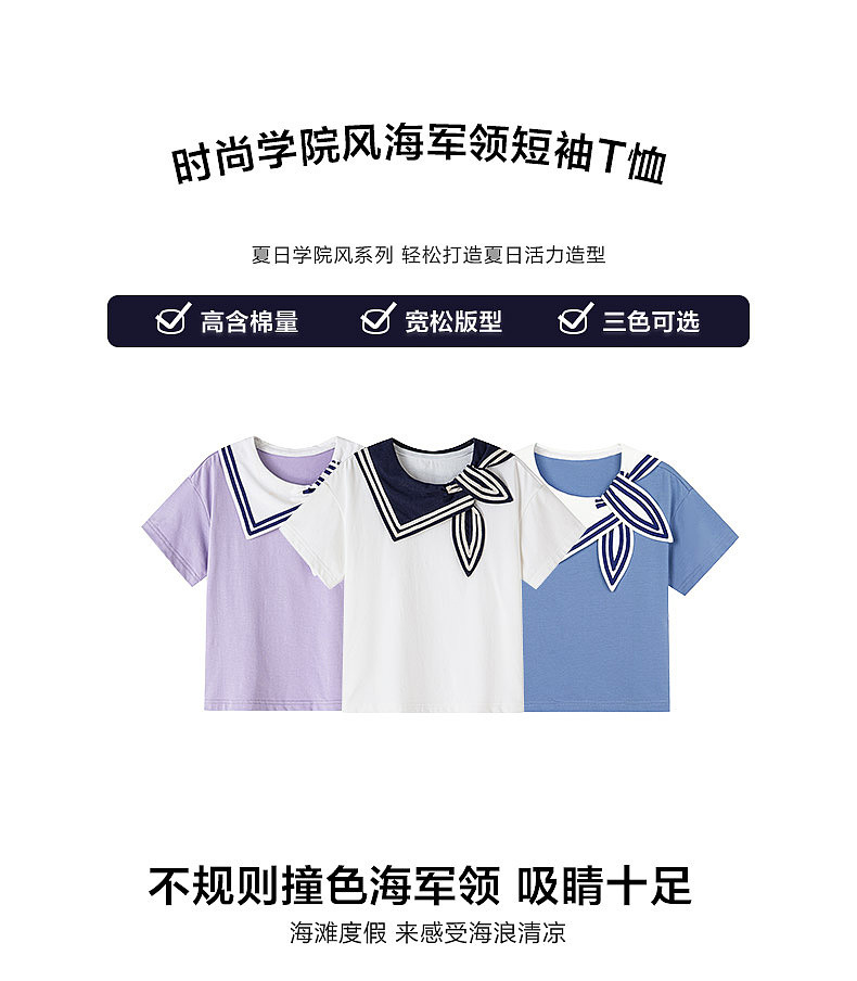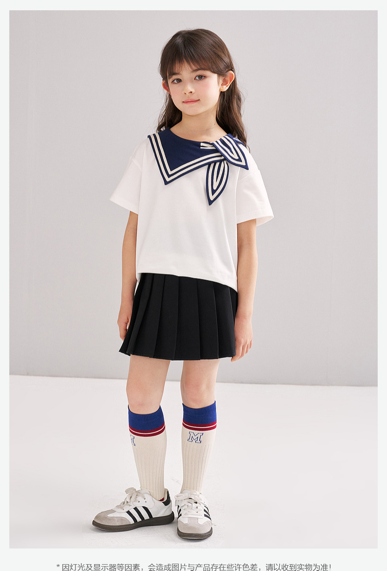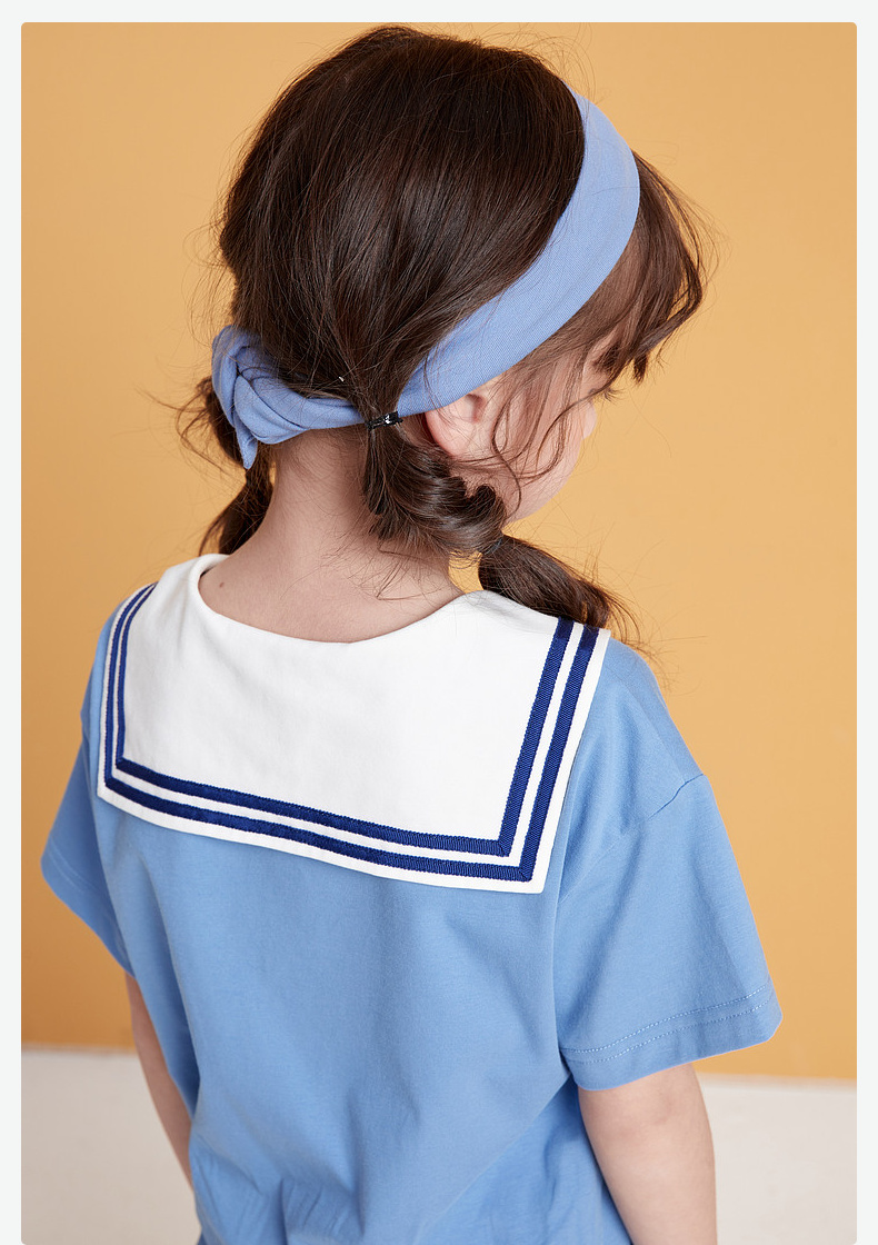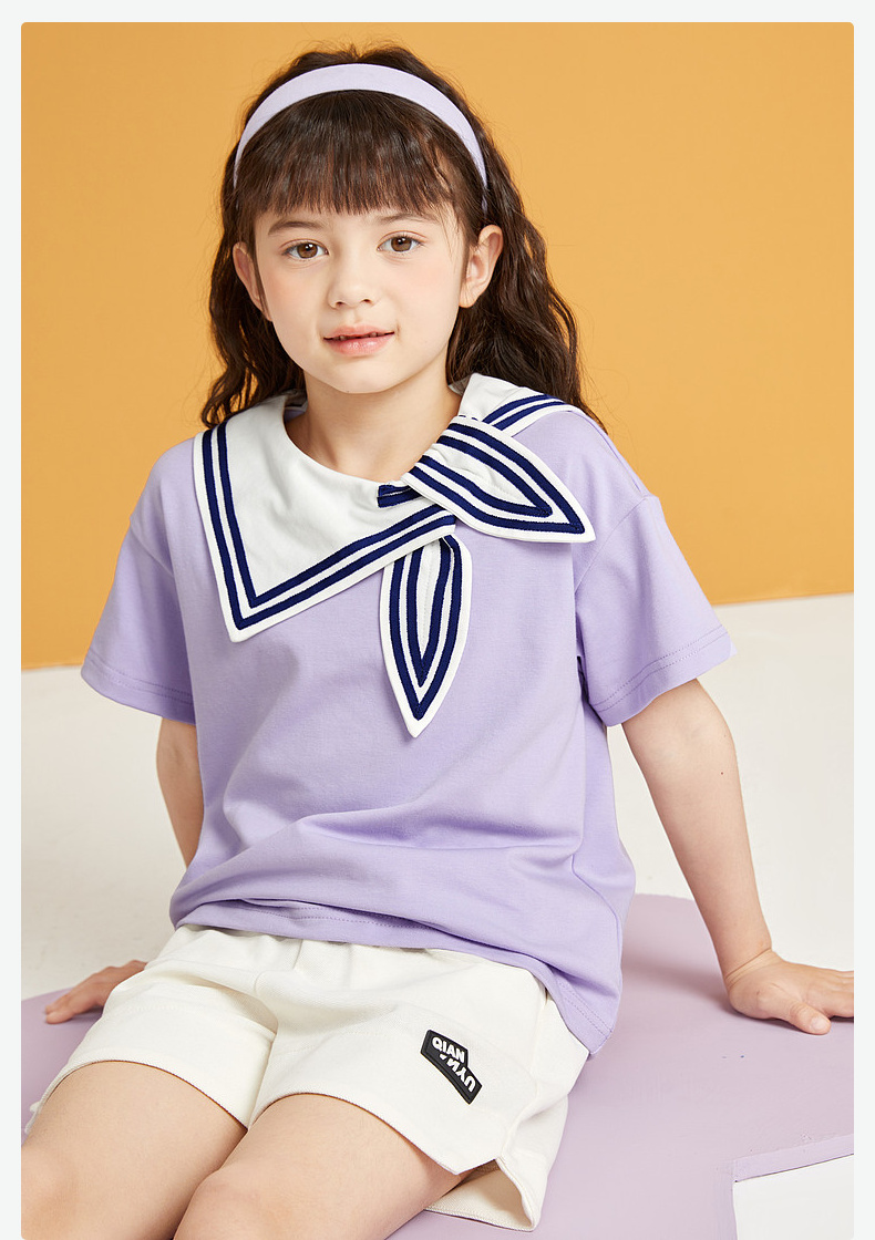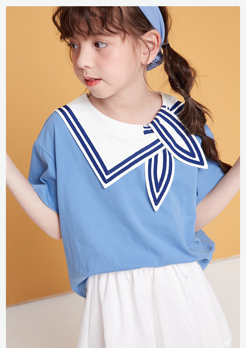 笛莎/Deesha 松饼熊2026年夏季新款童装女童时尚学院风海军领短袖T恤