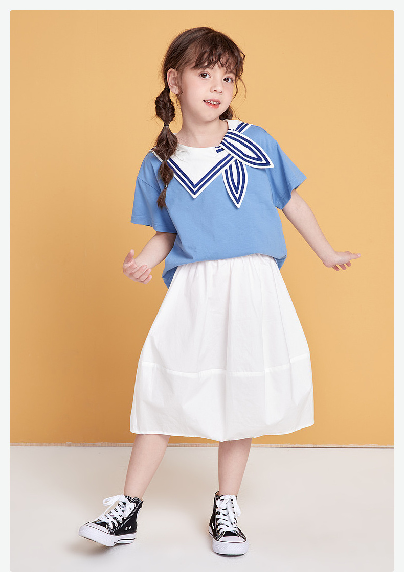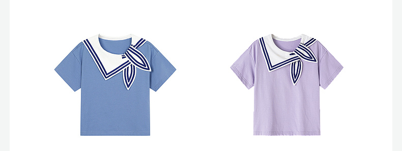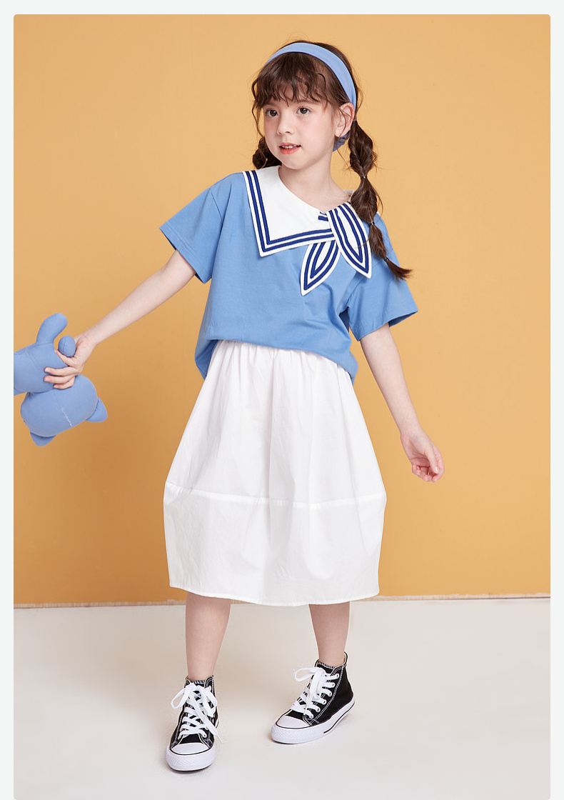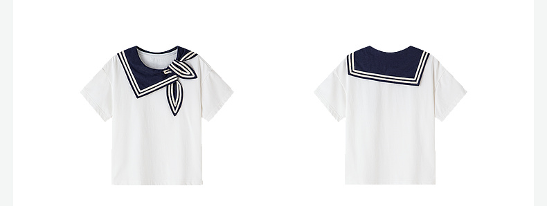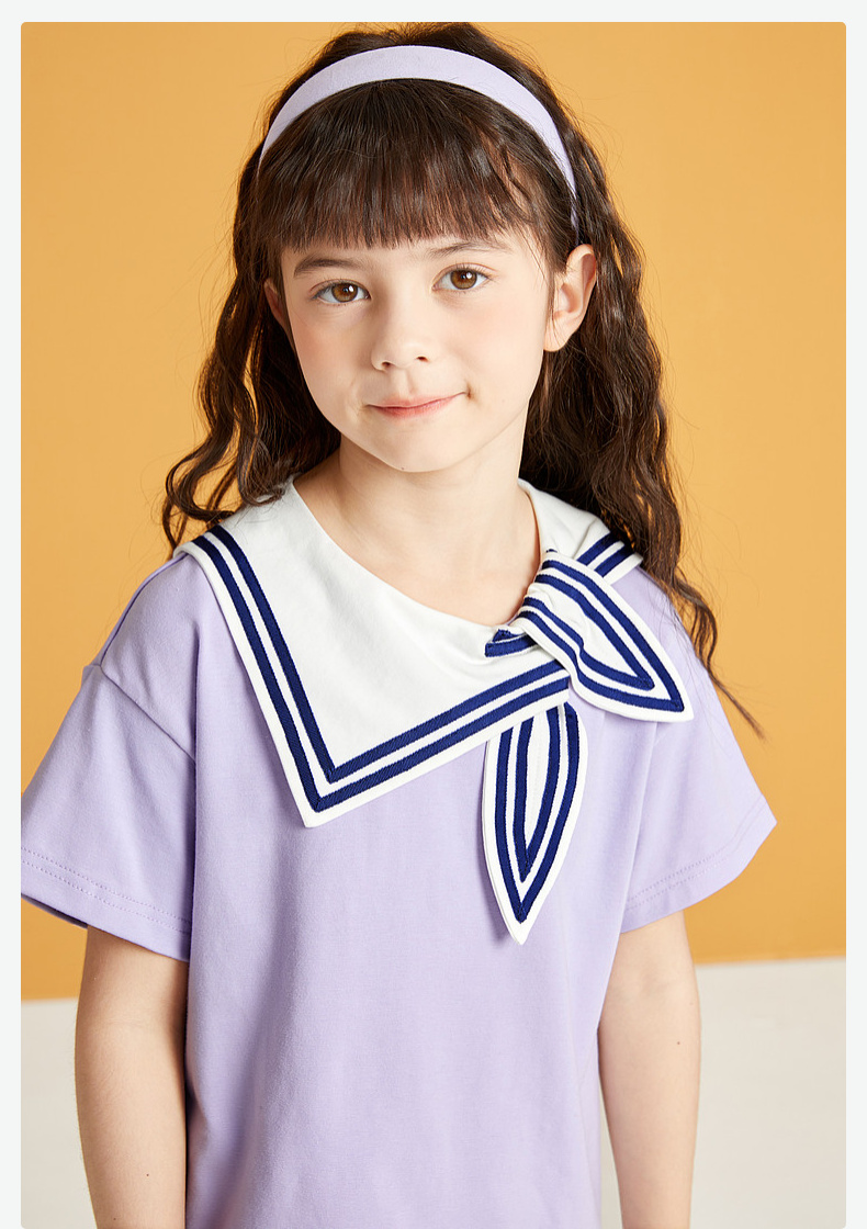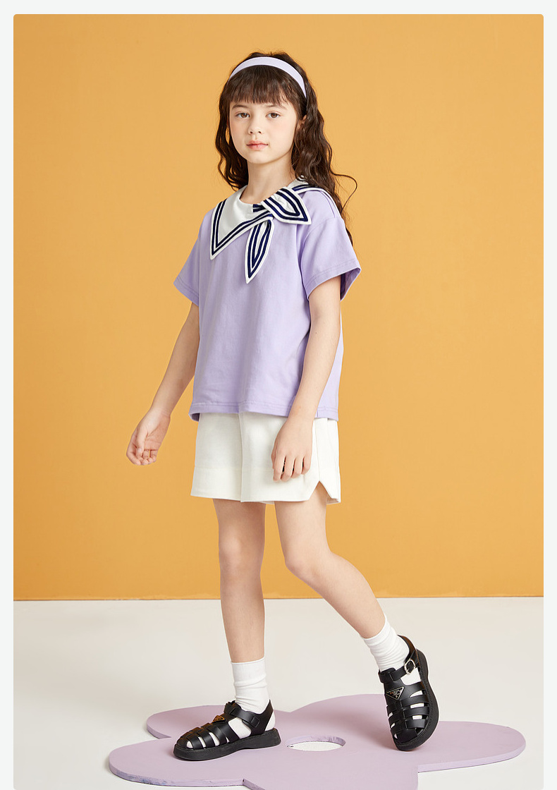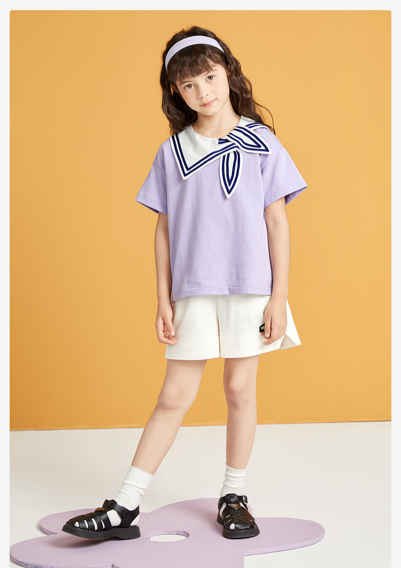 笛莎/Deesha 松饼熊2026年夏季新款童装女童时尚学院风海军领短袖T恤