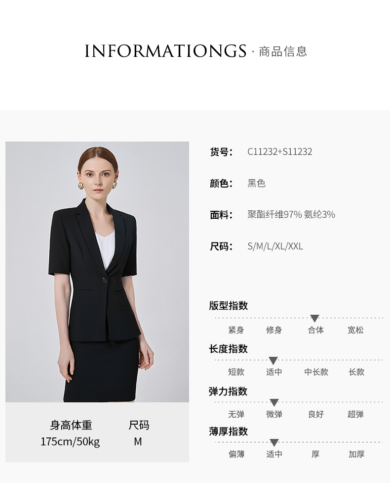IWY/黑色时尚高端经理职业装女套装名媛气质商务小香风西装套裙深VC11232+S11232黑色