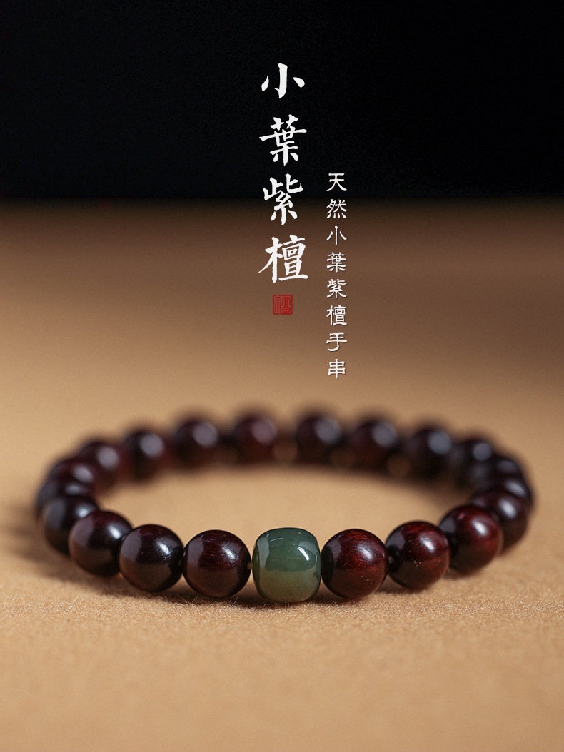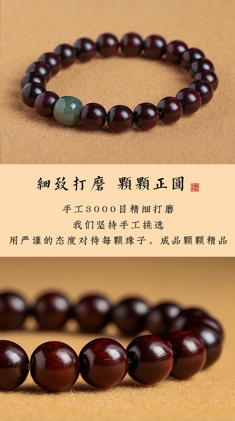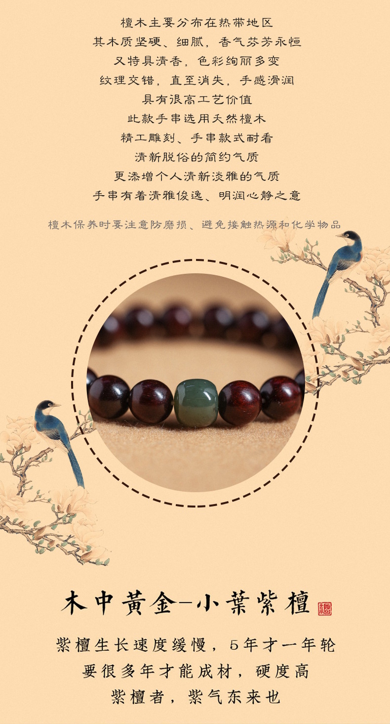 【印度小叶紫檀木手串】男女情侣款 金丝檀木文玩佛珠和田玉女念珠手链