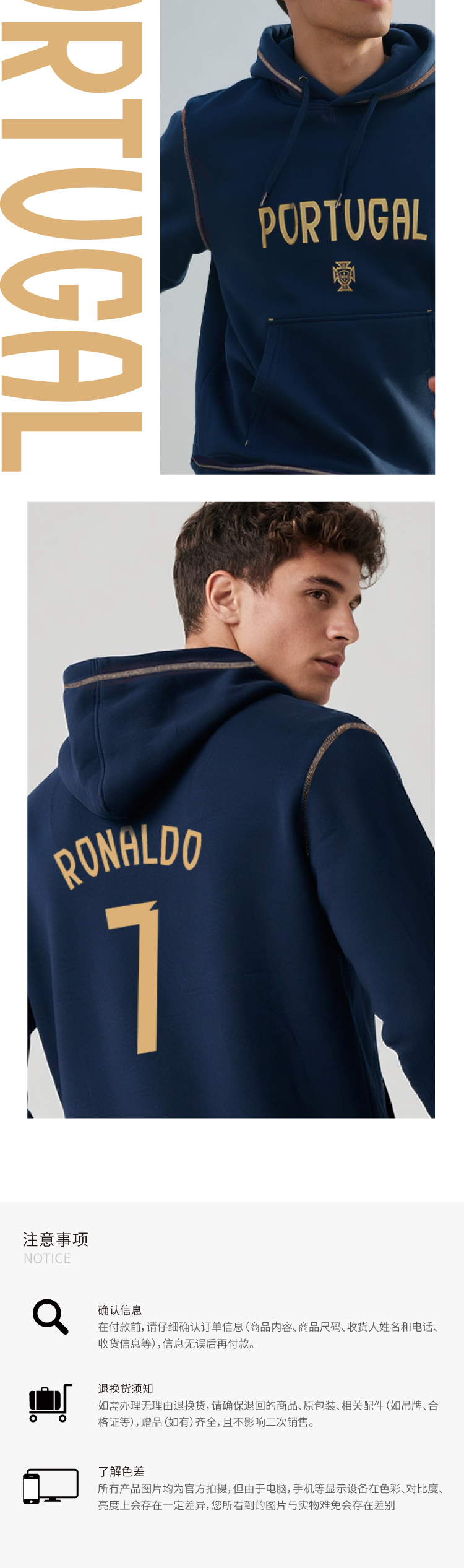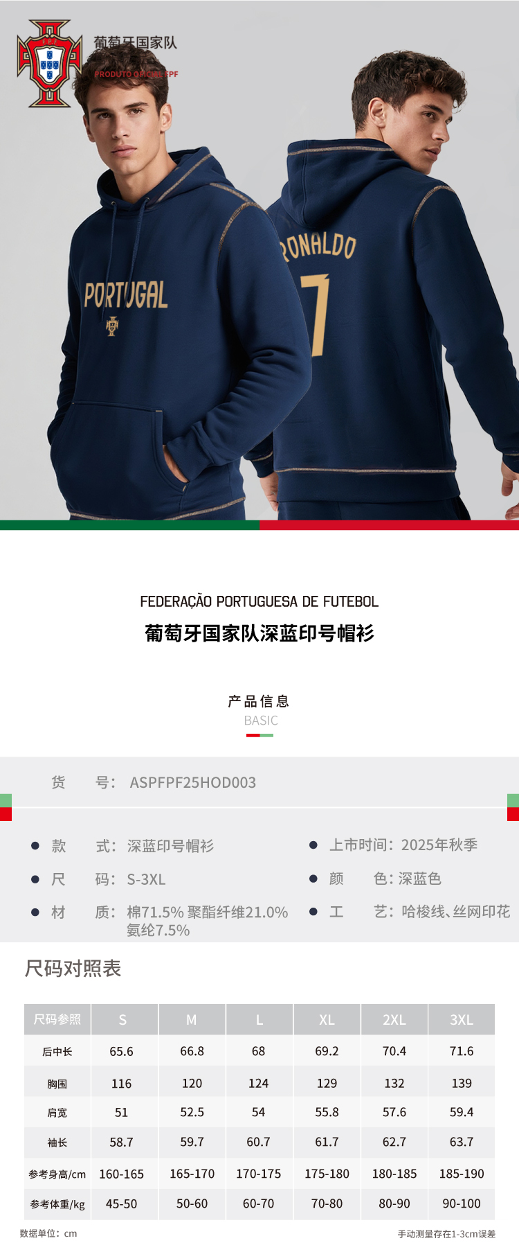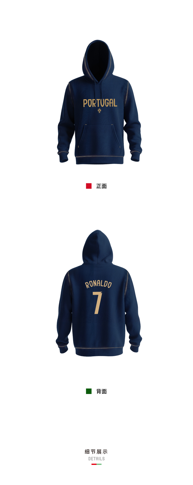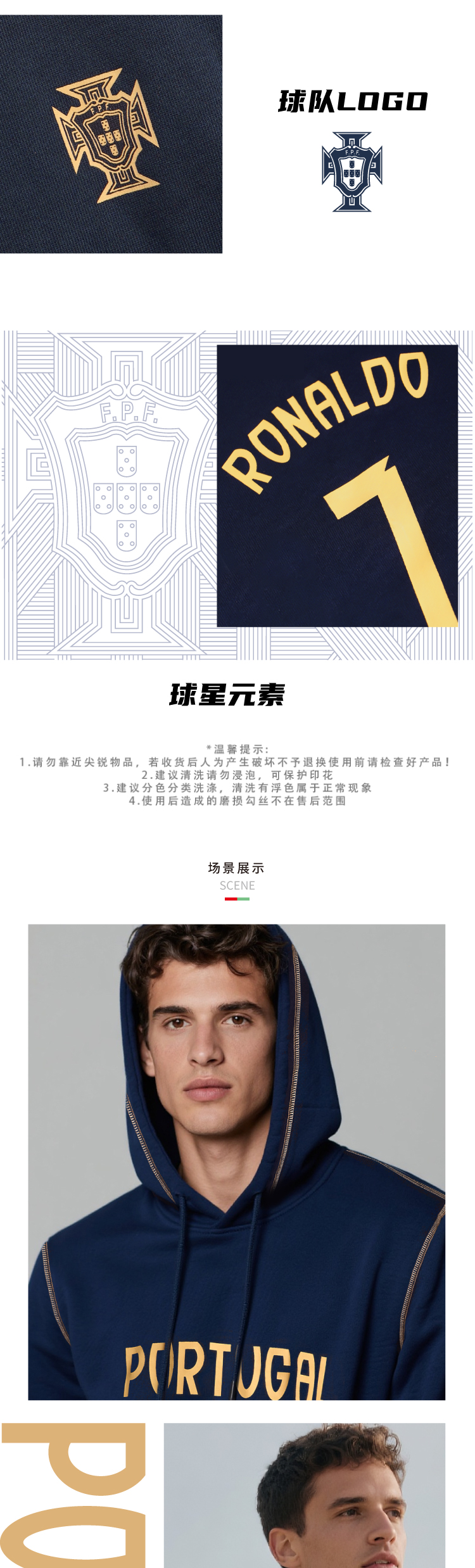【官方正版】葡萄牙国 家队 | 深蓝色连帽卫衣秋季长袖上衣C罗