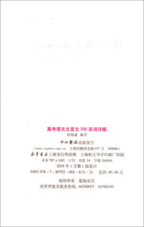 高考语文文言文300实词详解+高考语文记诵手册上海卷2018中西书局