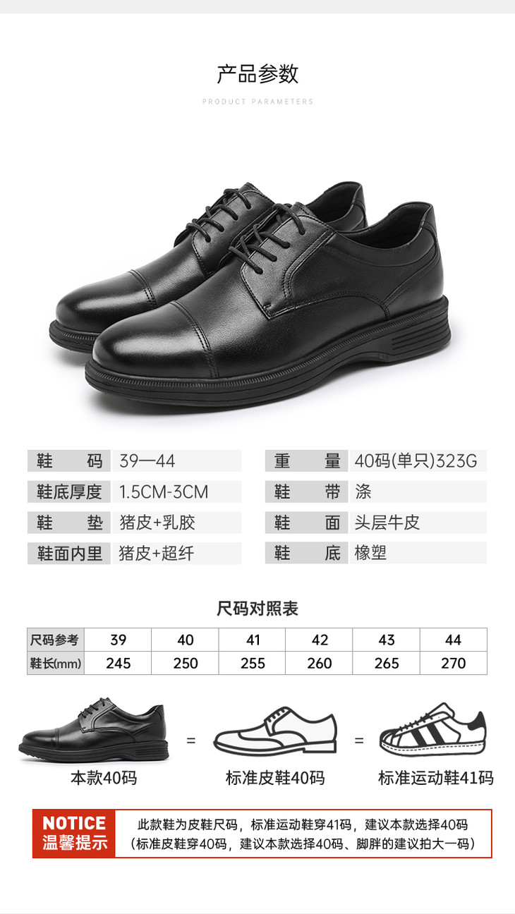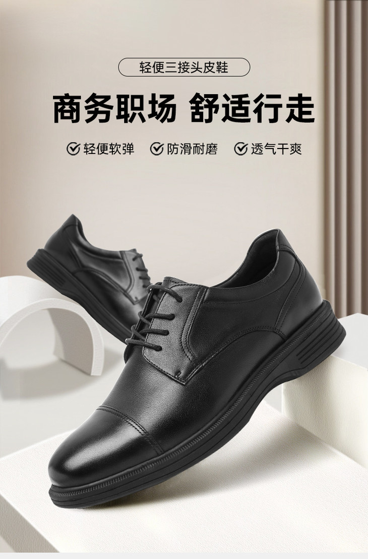 【轻便三接头皮鞋】通勤商务正装皮鞋 轻便软弹牛皮皮鞋