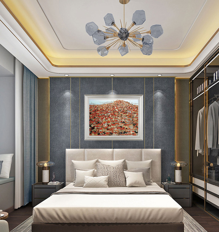 吴冠中综合版画《青岛红楼》 装裱尺寸:78cm×63cm