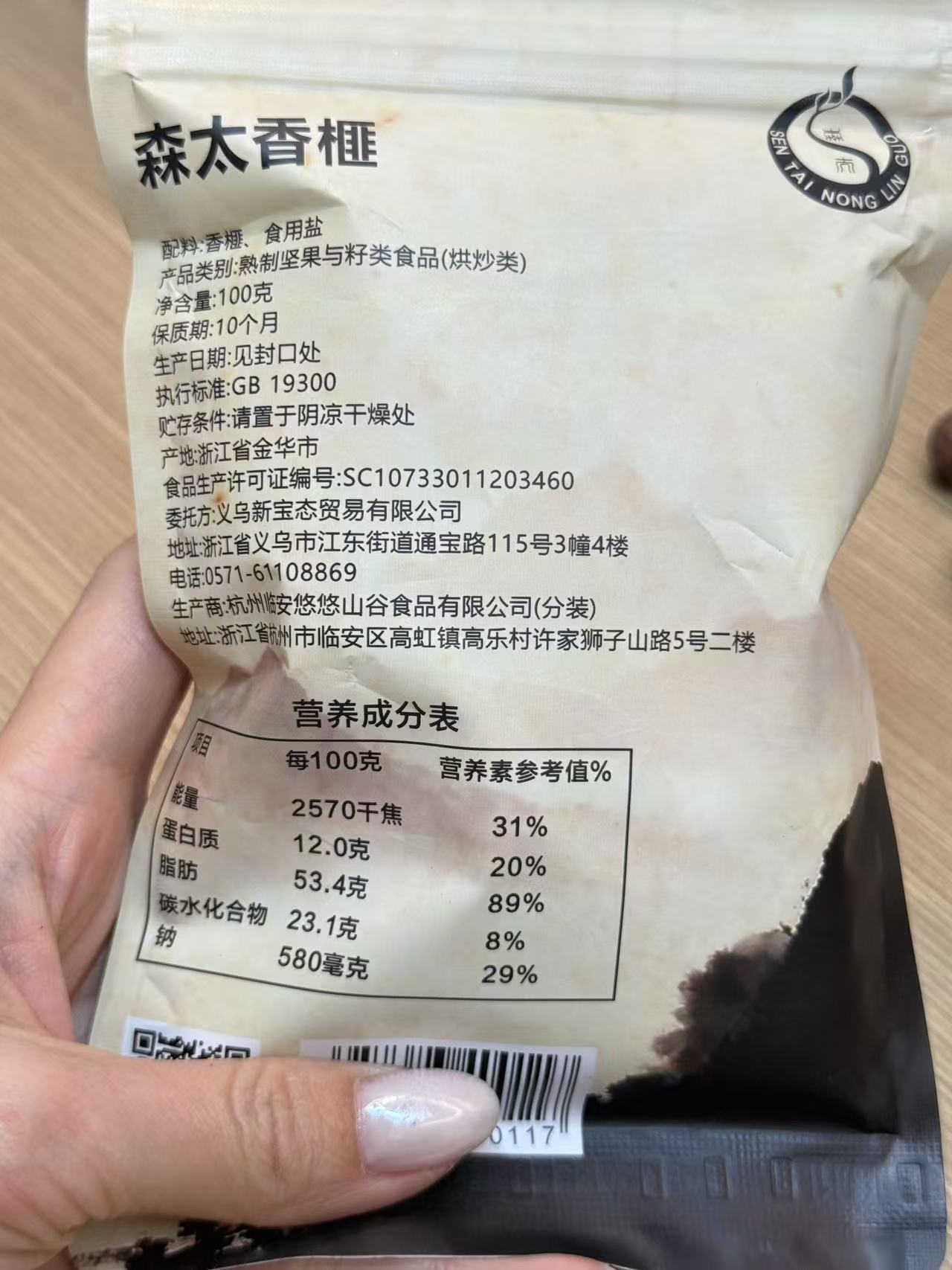 森太香榧的制作,配料表仅有香榧及食用盐。全程从不添加任何科技与狠活~从采摘剥壳,到渥堆发酵,到果核晾晒,到泉水冲洗,到二次晾晒,到盐锅炒制,到冷水分离,到再次烘焙……每道工序都蕴藏着耐心、专心、细心,每颗果子都与阳光、山泉相亲相拥~