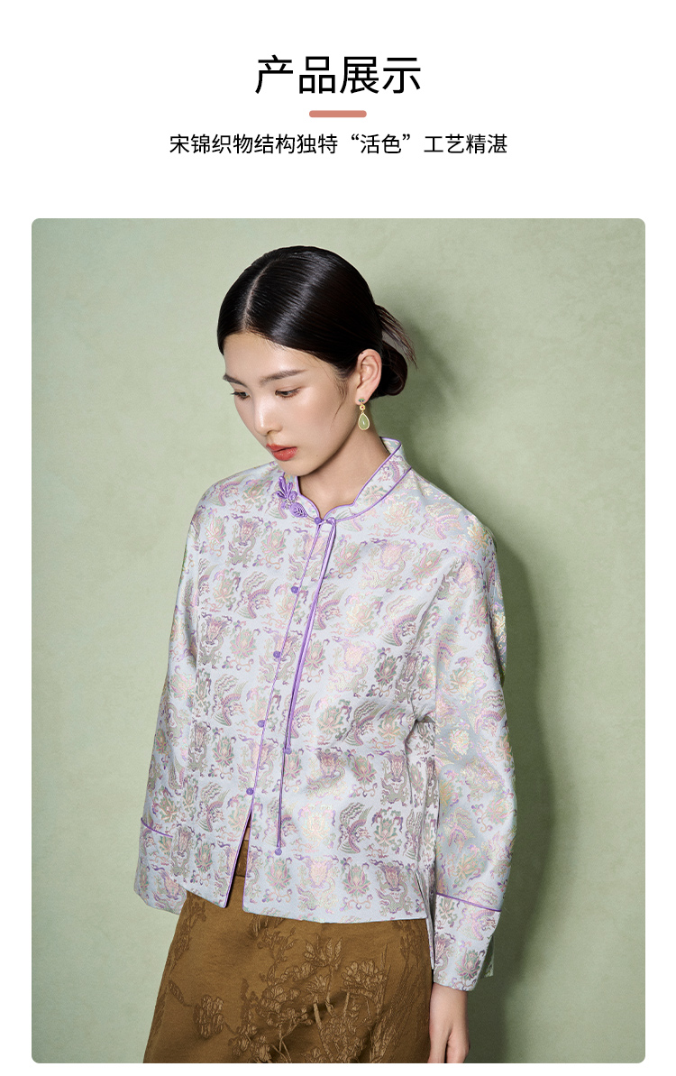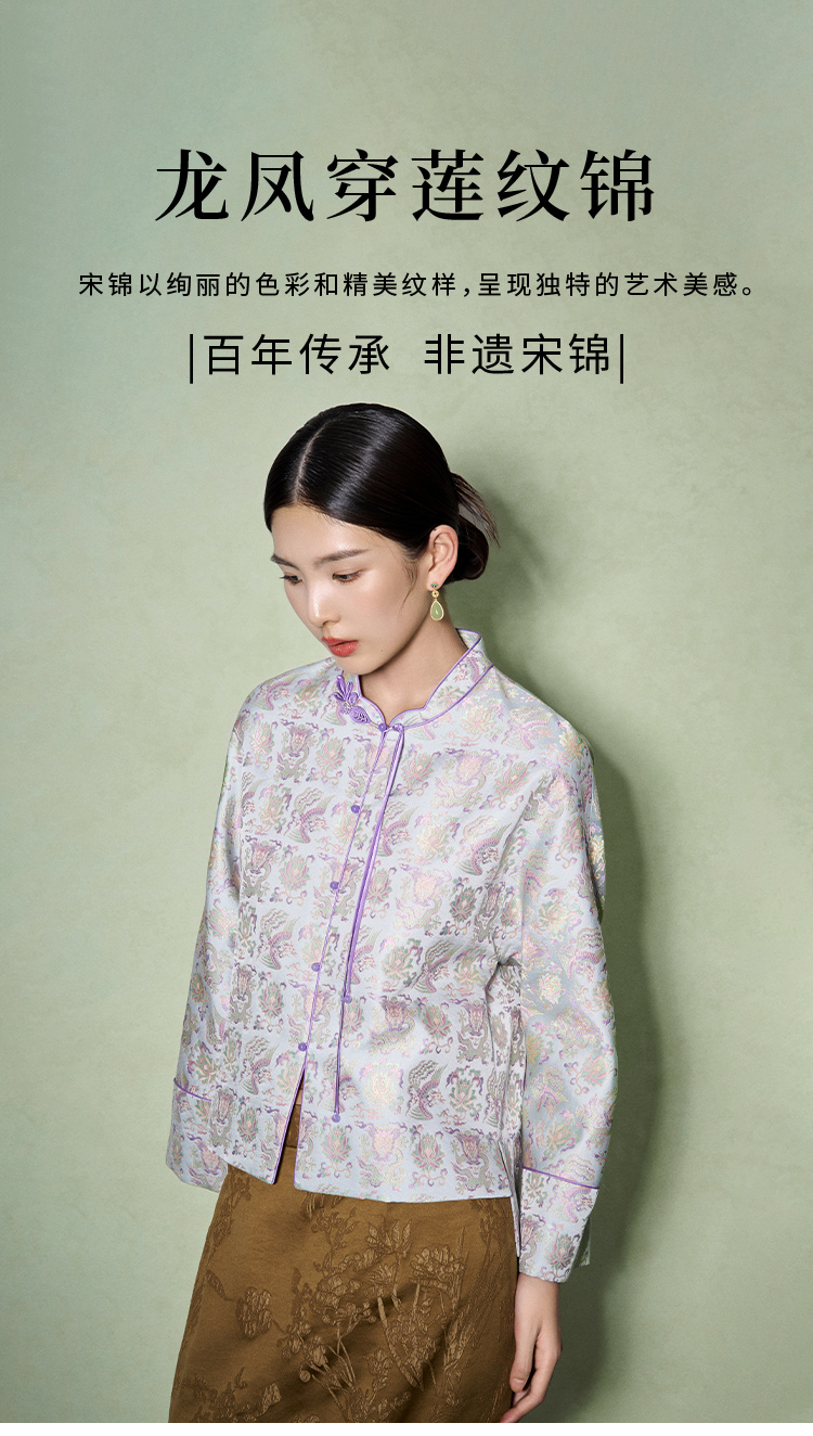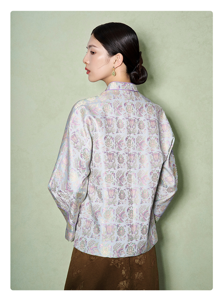 SAINTJOY/上久楷 女式宋锦外套 中式上衣 中国风 复古 龙凤穿莲纹锦 CY1024207027