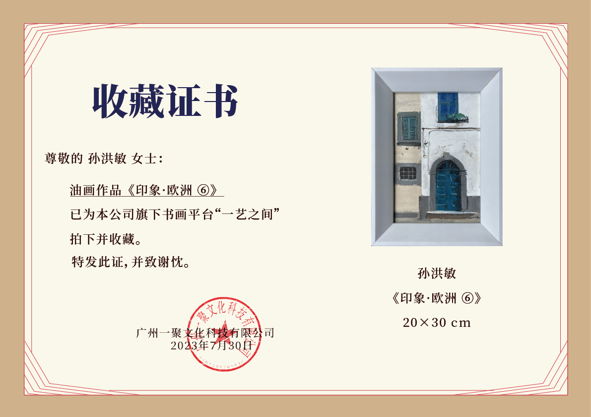 孙洪敏《印象-欧洲6》油画 20CMx30CM 约0.54平尺(已装框)【原作编号YH0016】