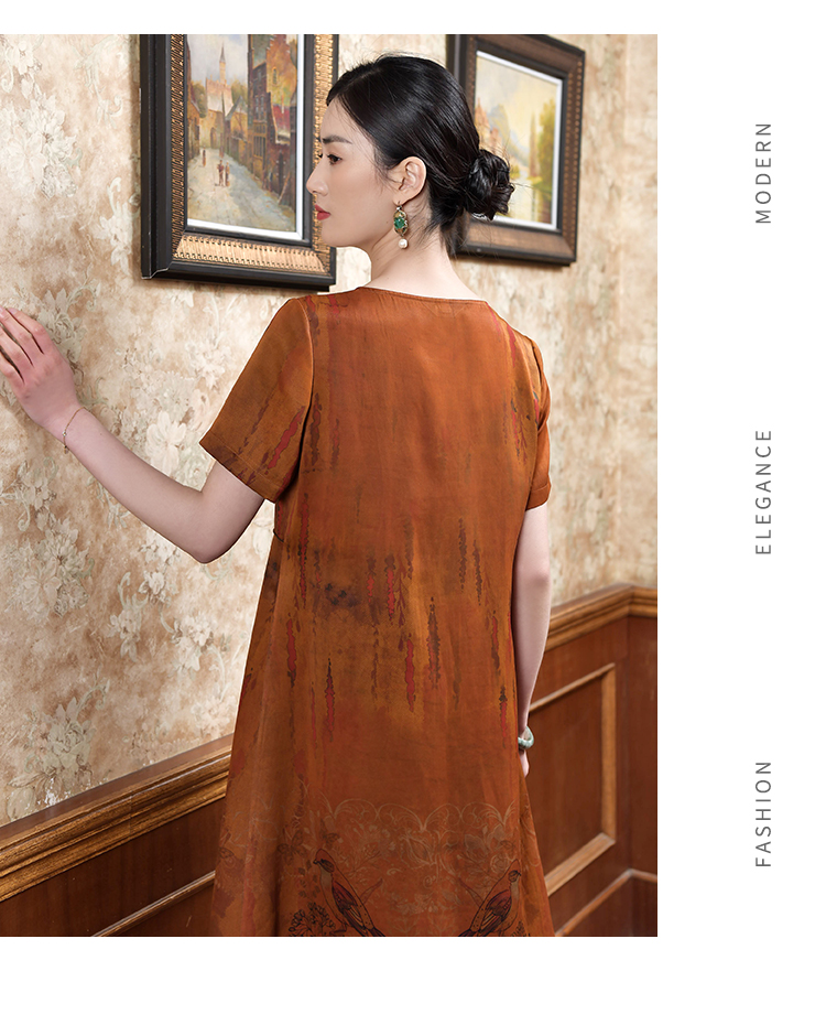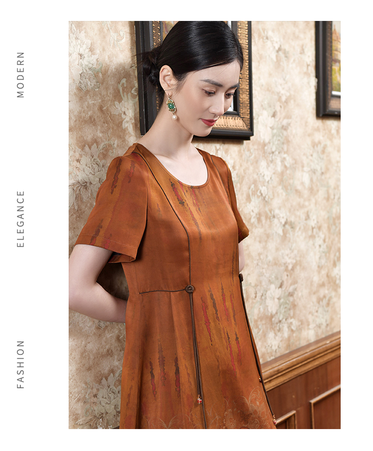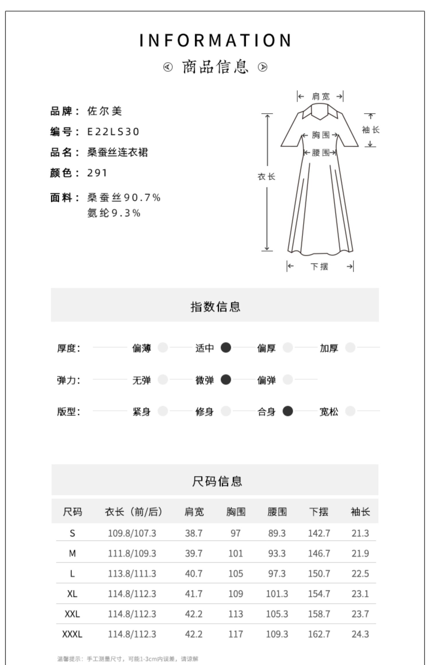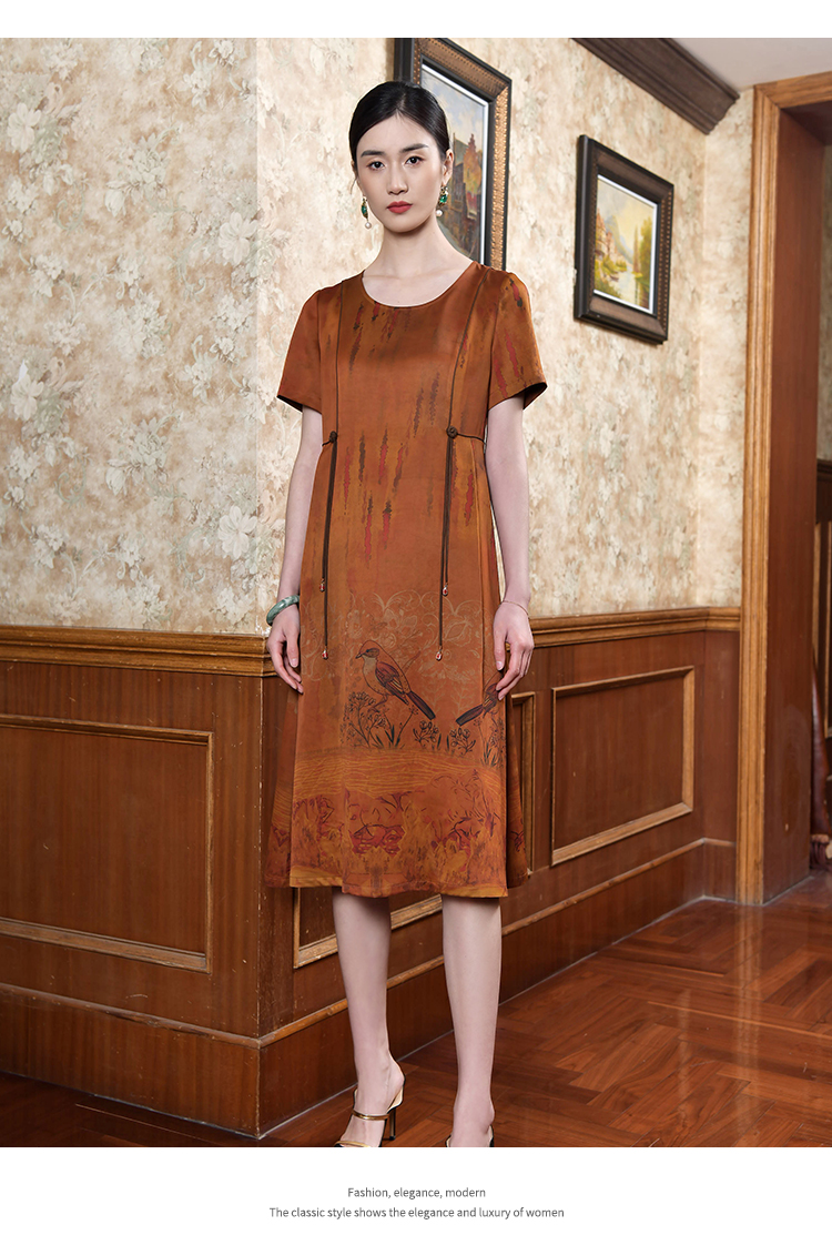 佐尔美2022夏季新款 桑蚕丝真丝缎面印花连衣裙女E22LS30