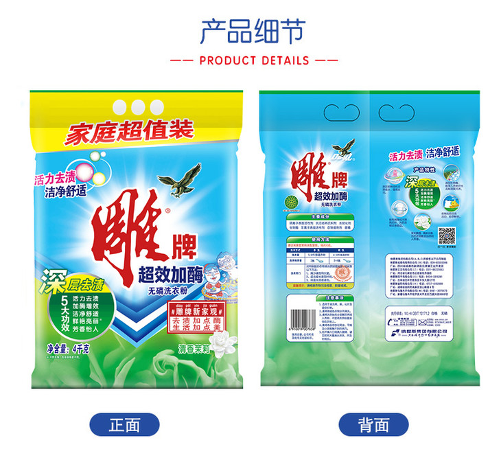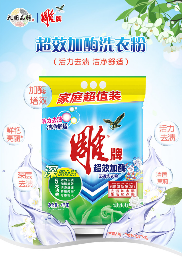 【雕牌】超效加酶无磷洗衣粉特价4kg
