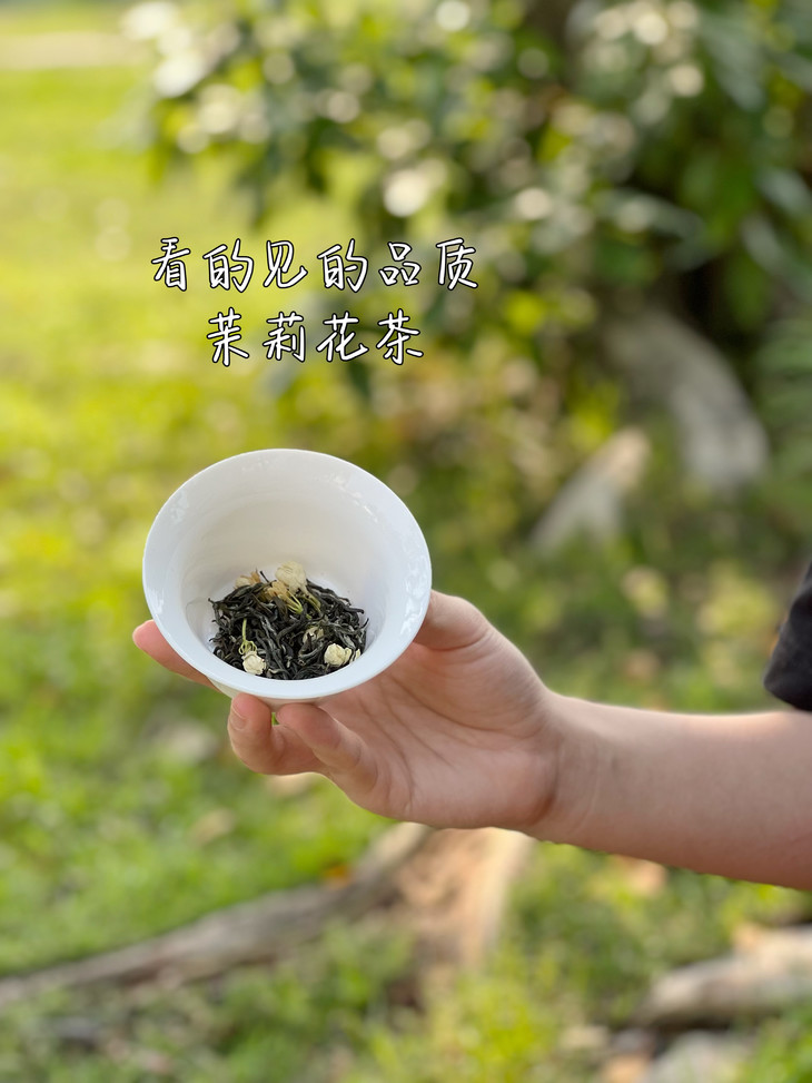 喝起来鲜醇爽口 🔻汤色黄绿明亮,叶底匀嫩且经久耐泡 浓香鲜醇,真材实料看得见的茉莉花茶