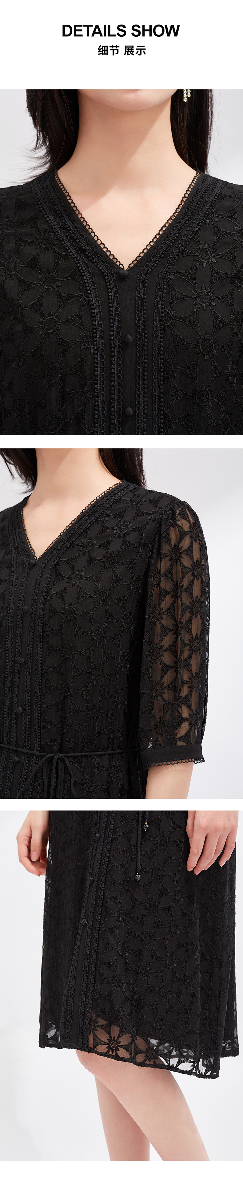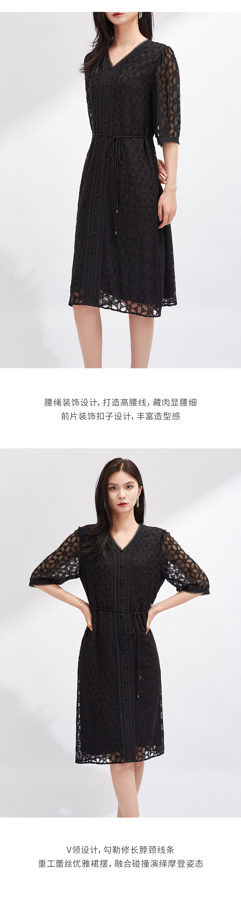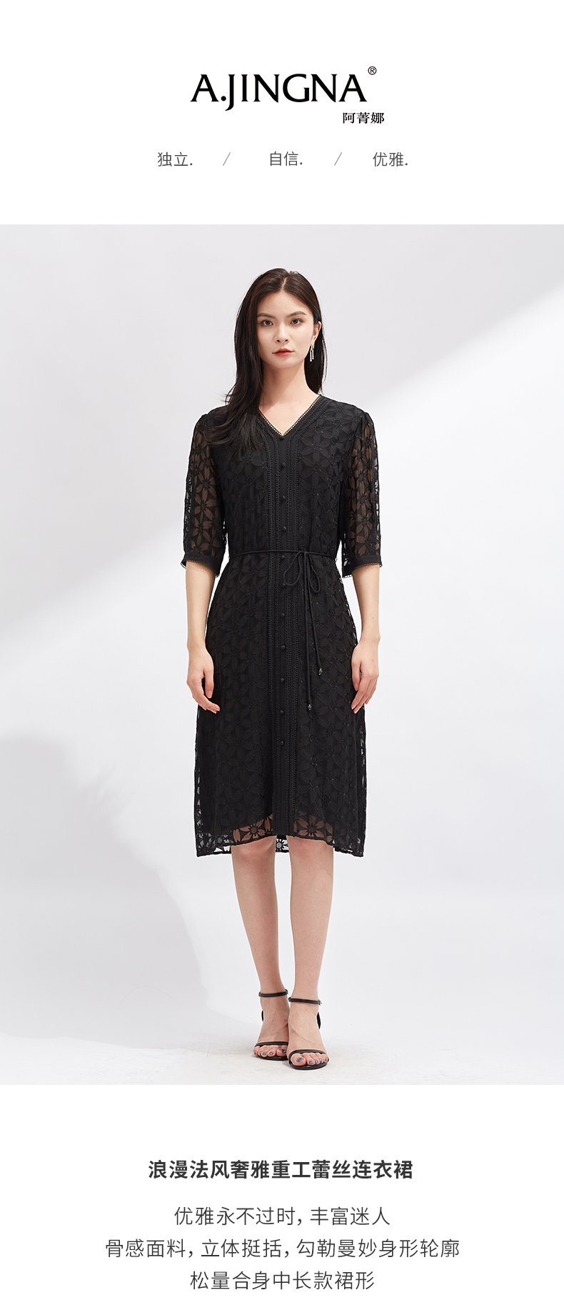 【立体挺括】阿菁娜浪漫法风奢雅重工蕾丝连衣裙F30X212068