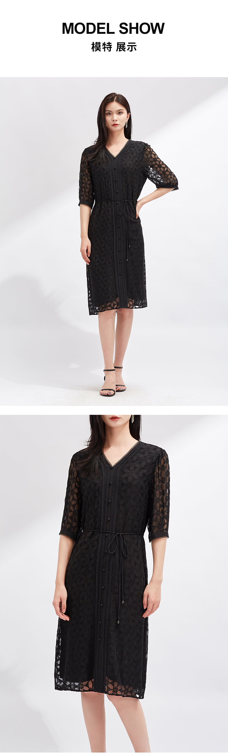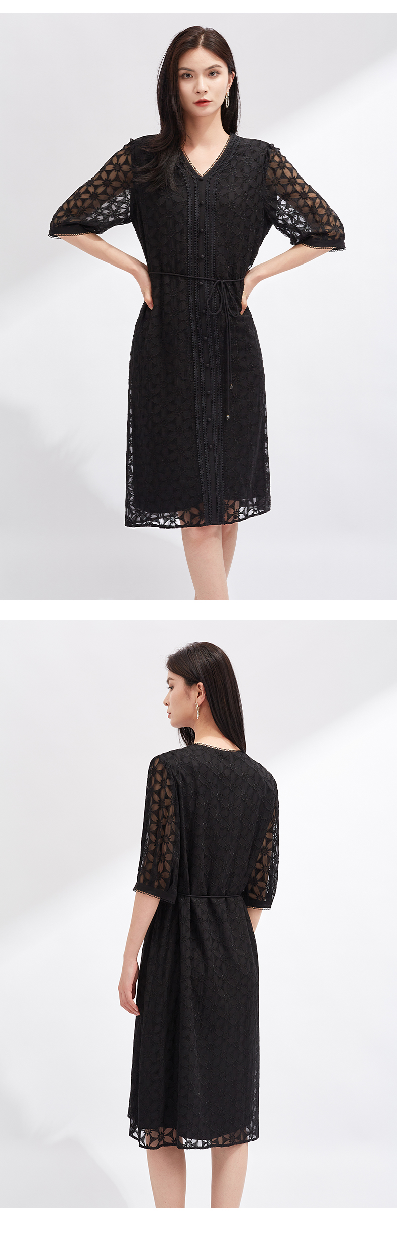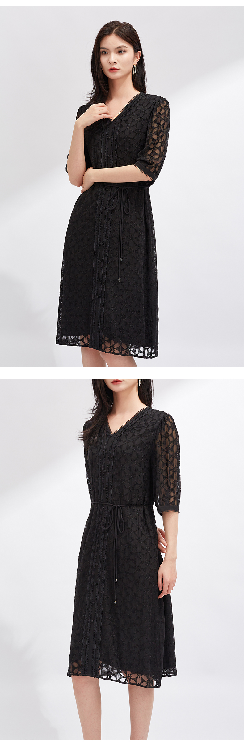 【立体挺括】阿菁娜浪漫法风奢雅重工蕾丝连衣裙F30X212068