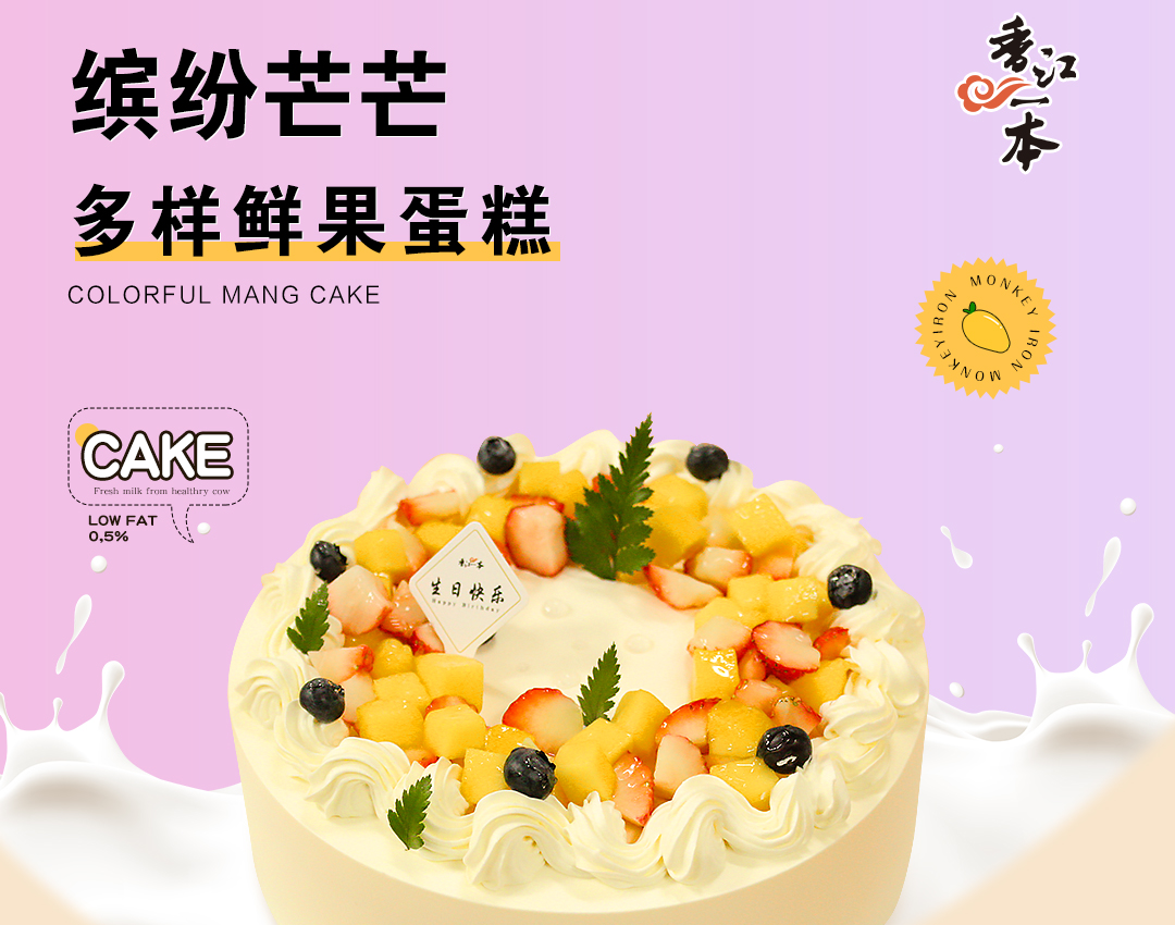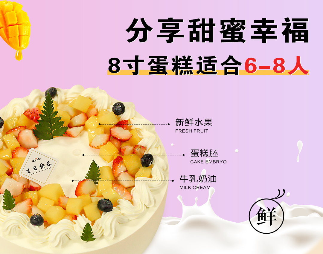 【缤纷芒芒】8英寸适合6-8人 新鲜水果(提前6--8小时下单,18:00后下单最快第二天15:30后可到店取货,具体时间看门店而定。)