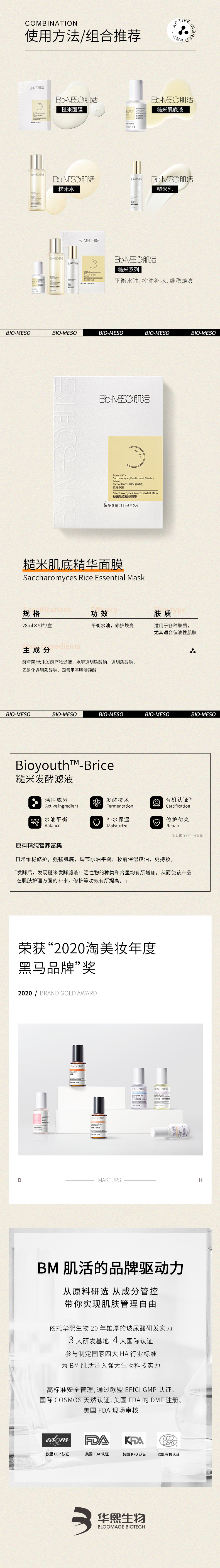 10片起拍【单片】 bm肌活糙米肌底精华面膜 28ml 华熙生物