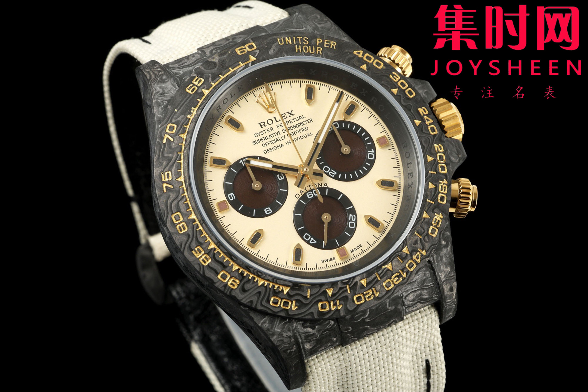 劳力士 DIW迪通拿碳纤维系列 改装迪通拿 新款颜色!重制版!丹东4801机 男士腕表 表径41mm 碳纤维外壳,超强高硬度,这一次升级不仅仅是成长,它是在进化,代表一个精致的视野,一个更大的时间艺术画布。